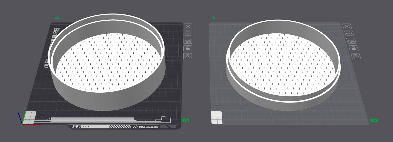 Hộp đựng hạt hút ẩm silica gel có lỗ thoáng, thiết kế để bạn sấy khô desiccant beads trực tiếp trong máy sấy filament. In PLA được, nhưng nhớ giữ nhiệt dưới 60°C và kiểm tra máy sấy trước khi dùng.