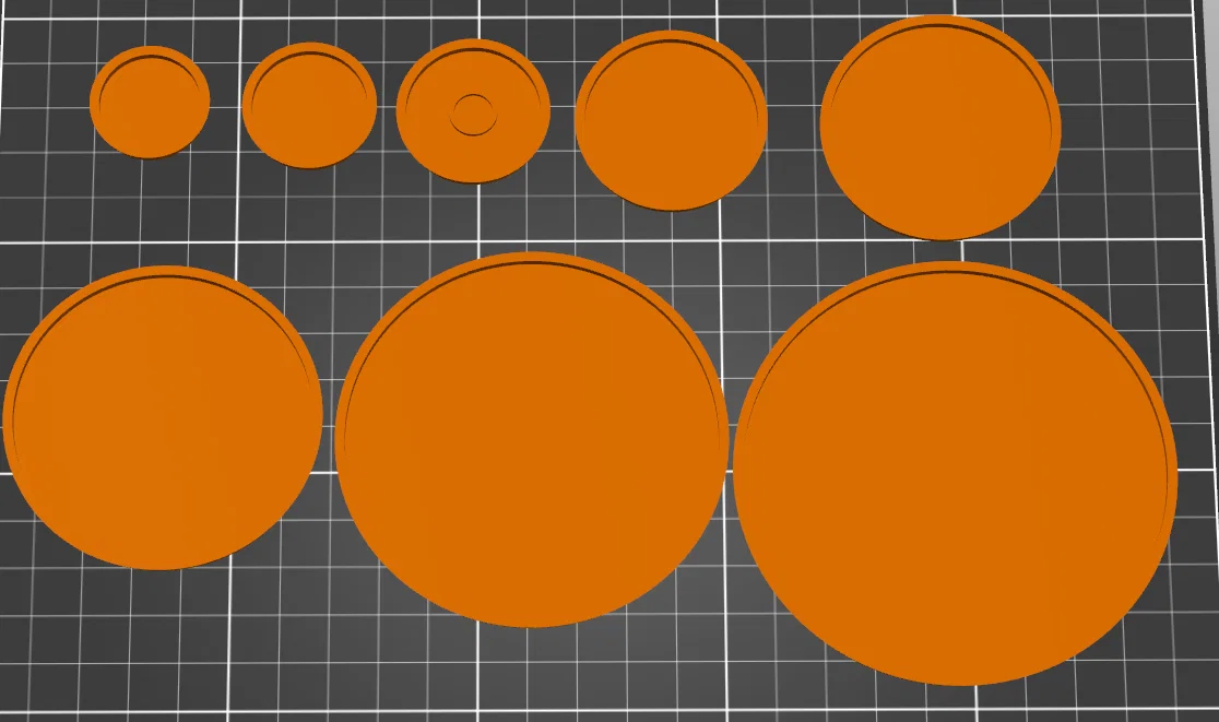 Bộ sưu tập base cho game miniature đủ cỡ 25–160mm, chuẩn kích thước kiểu Games Workshop, dùng được cho nhiều hệ như 40K/AoS/LoTR. Có bản có/không lỗ nam châm (8x2mm), base lớn có nhiều lỗ để bám chắc.