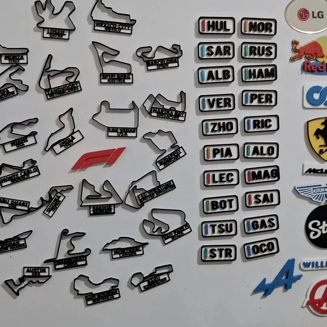 Bộ logo các đội Formula 1 (phần 1/3) dạng nam châm, tối ưu để in đổi màu theo layer trên máy 1 đầu đùn. Chỉ cần pause at height/filament change trong slicer là có thể ra nhiều màu, rất dễ in.