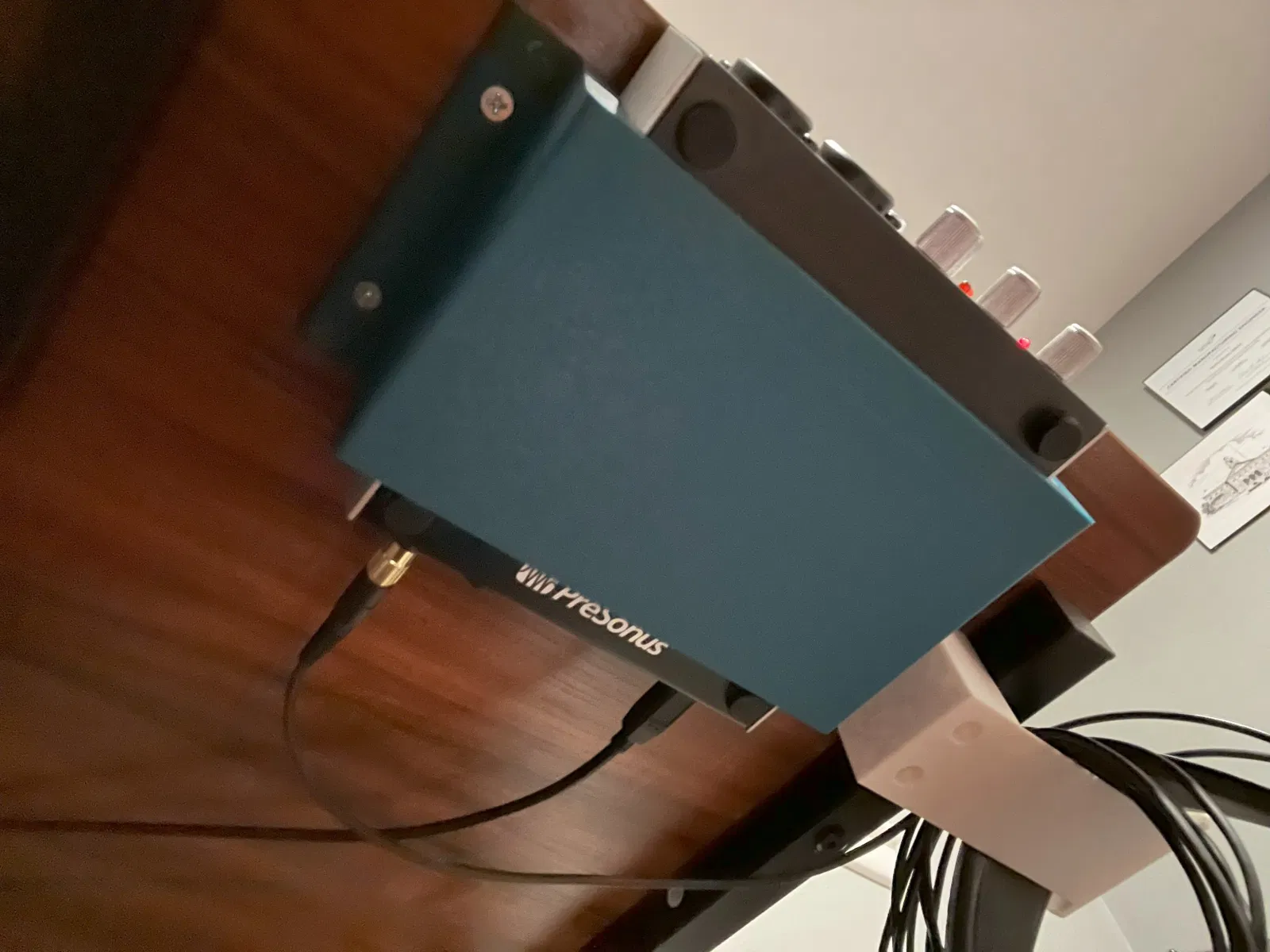 Tôi muốn tối đa hóa không gian bàn làm việc của mình nên đã tạo ra giá đỡ dưới bàn cho PreSonus Audiobox USB96.