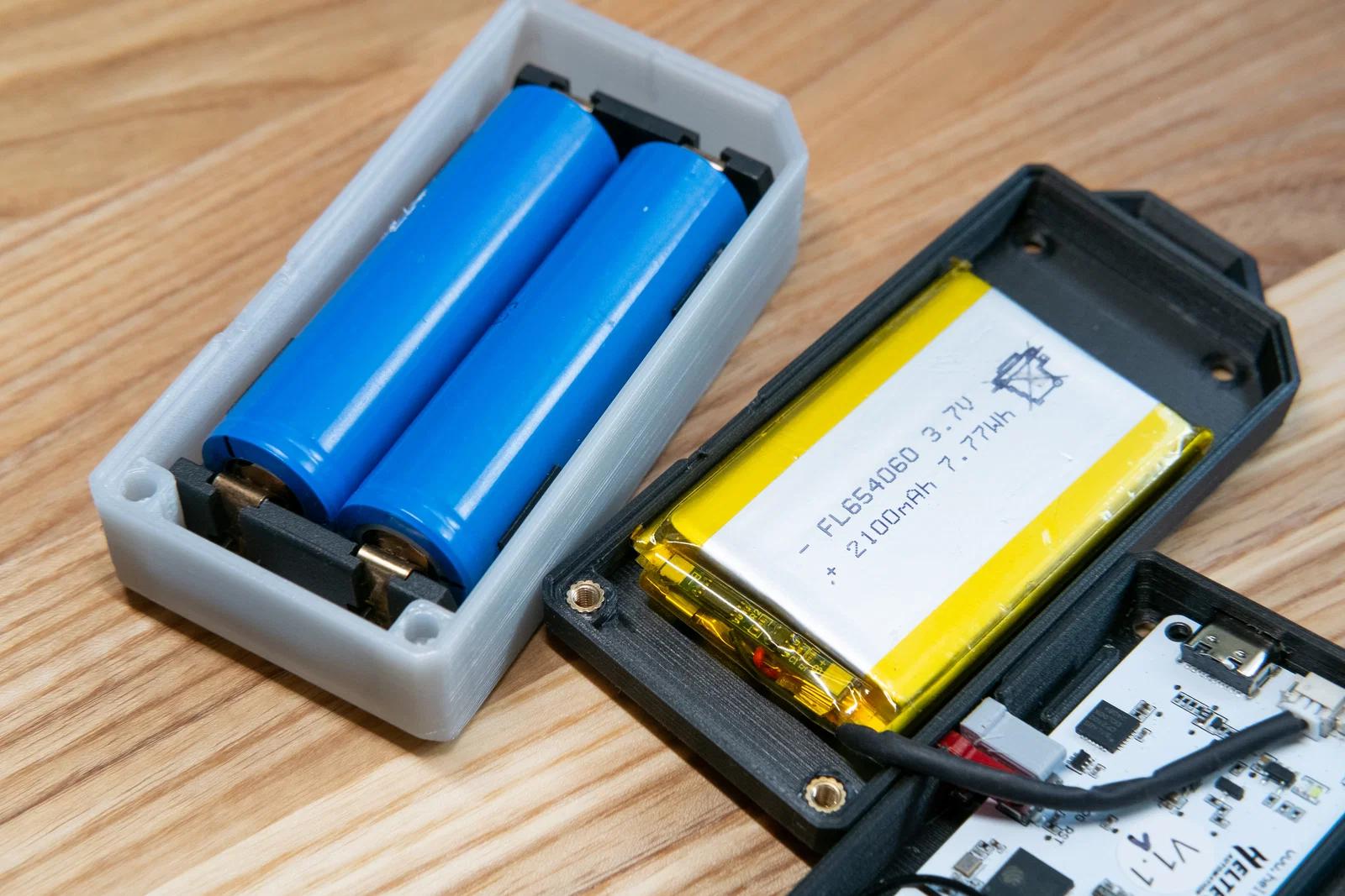 - L: Có thể gắn 2 viên pin 18650 trong holder (ví dụ: https://aliexpress.com/item/4001152338150.html) hoặc các loại pin khác dày tối đa 19mm.