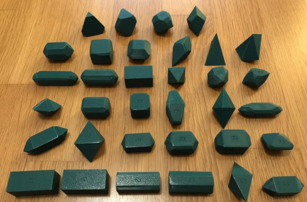 Đây là bản tái tạo của “The Dana Set of Wooden Crystal Models”, ban đầu được sản xuất bởi Dr. Krantz Rheinisches Mineralien-Kontor (Bonn).
