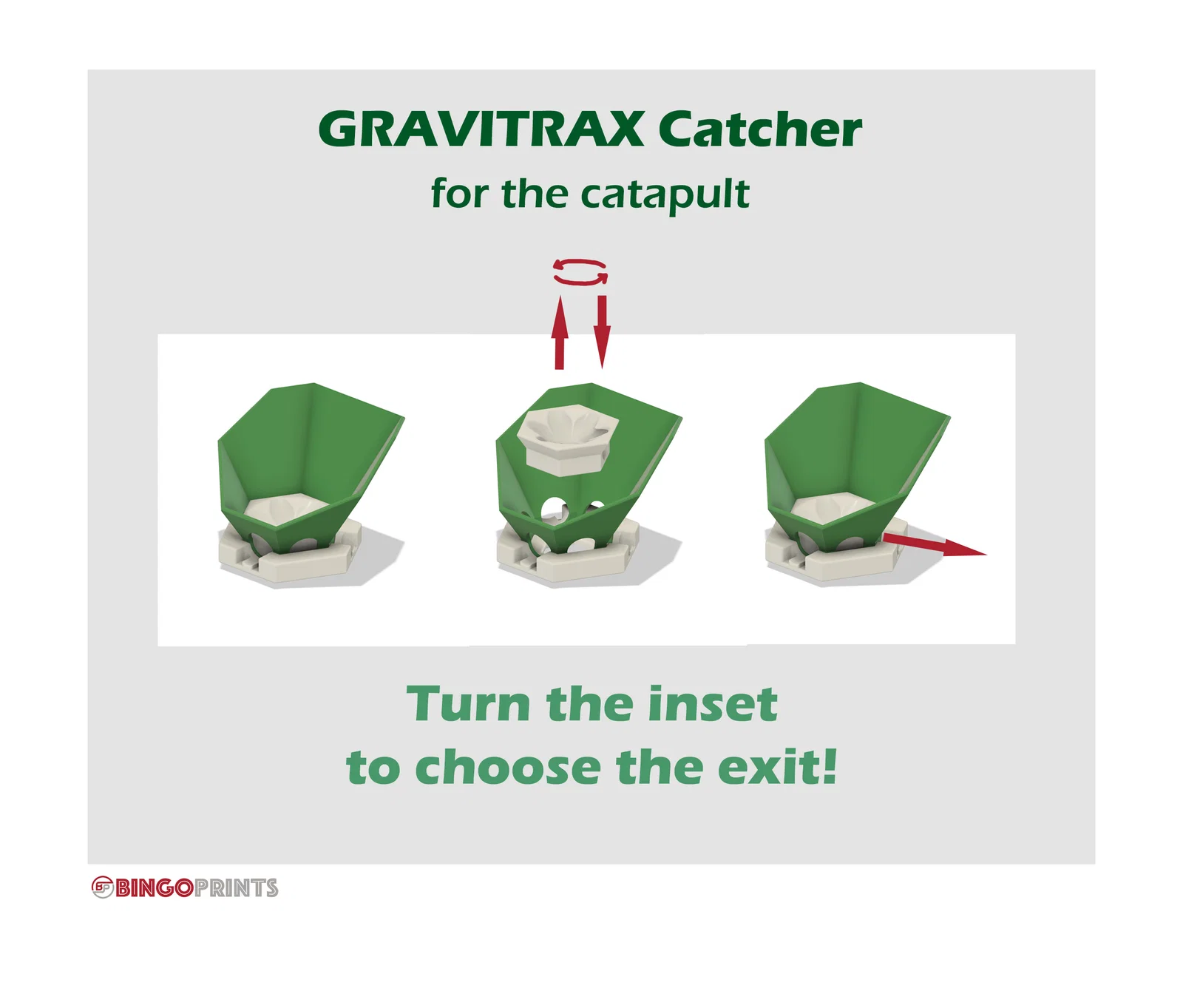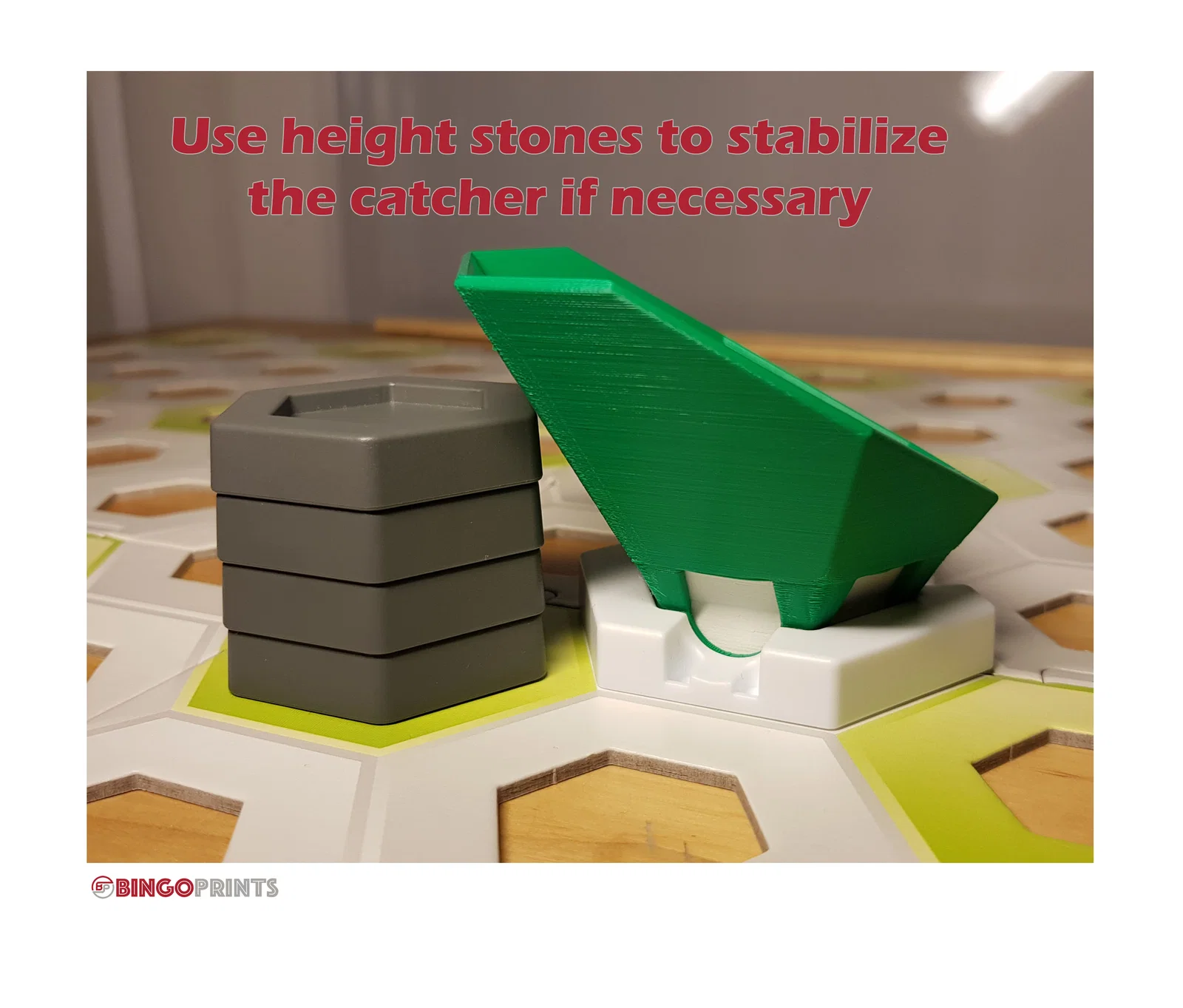 Catcher dành cho Gravitrax catapult, dùng chung với base stone chính hãng. Có inset để chọn hướng thoát của viên bi. Gợi ý: dán funnel vào base stone cho vững, hoặc kê bằng height stones nếu không muốn dán.