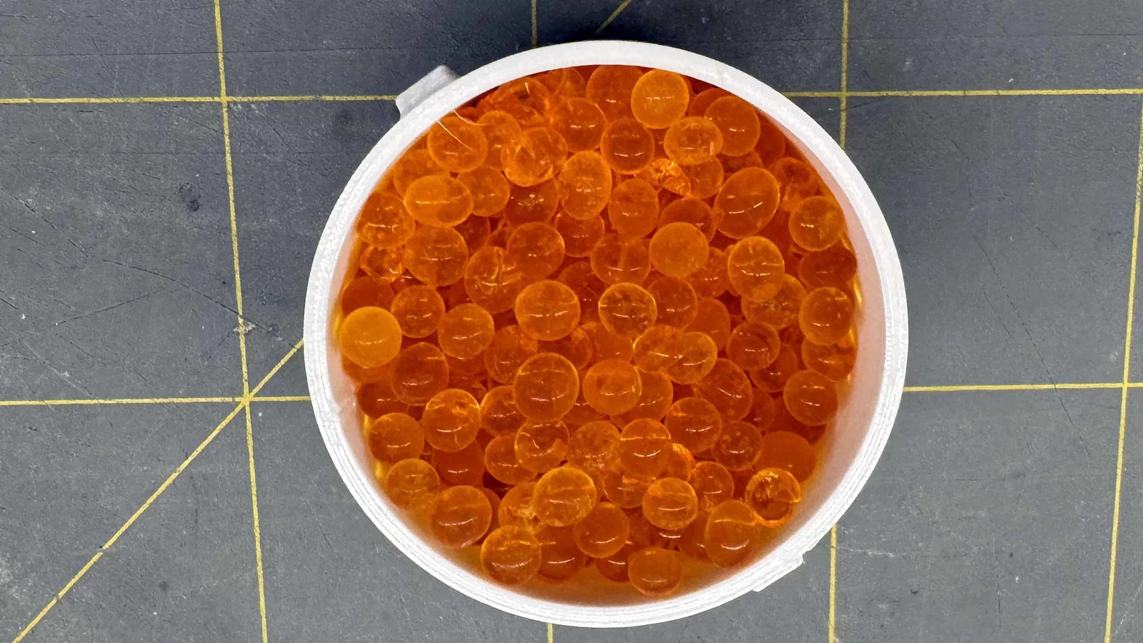 Khay giữ gói hút ẩm này kẹp (clip) vô rất dễ ở lỗ giữa của cuộn filament bìa carton Polymaker hoặc cuộn nhựa Prusament. Hộp chứa hút ẩm không cần mở ra khi lấy khỏi cuộn. Khay hút ẩm có thể búng ra nhanh gọn khỏi cuộn và chuyển qua cuộn mới bất cứ lúc nào. Rổ đựng hút ẩm nạp đầy rất lẹ, và nắp đóng bằng cách xoay 90 độ.