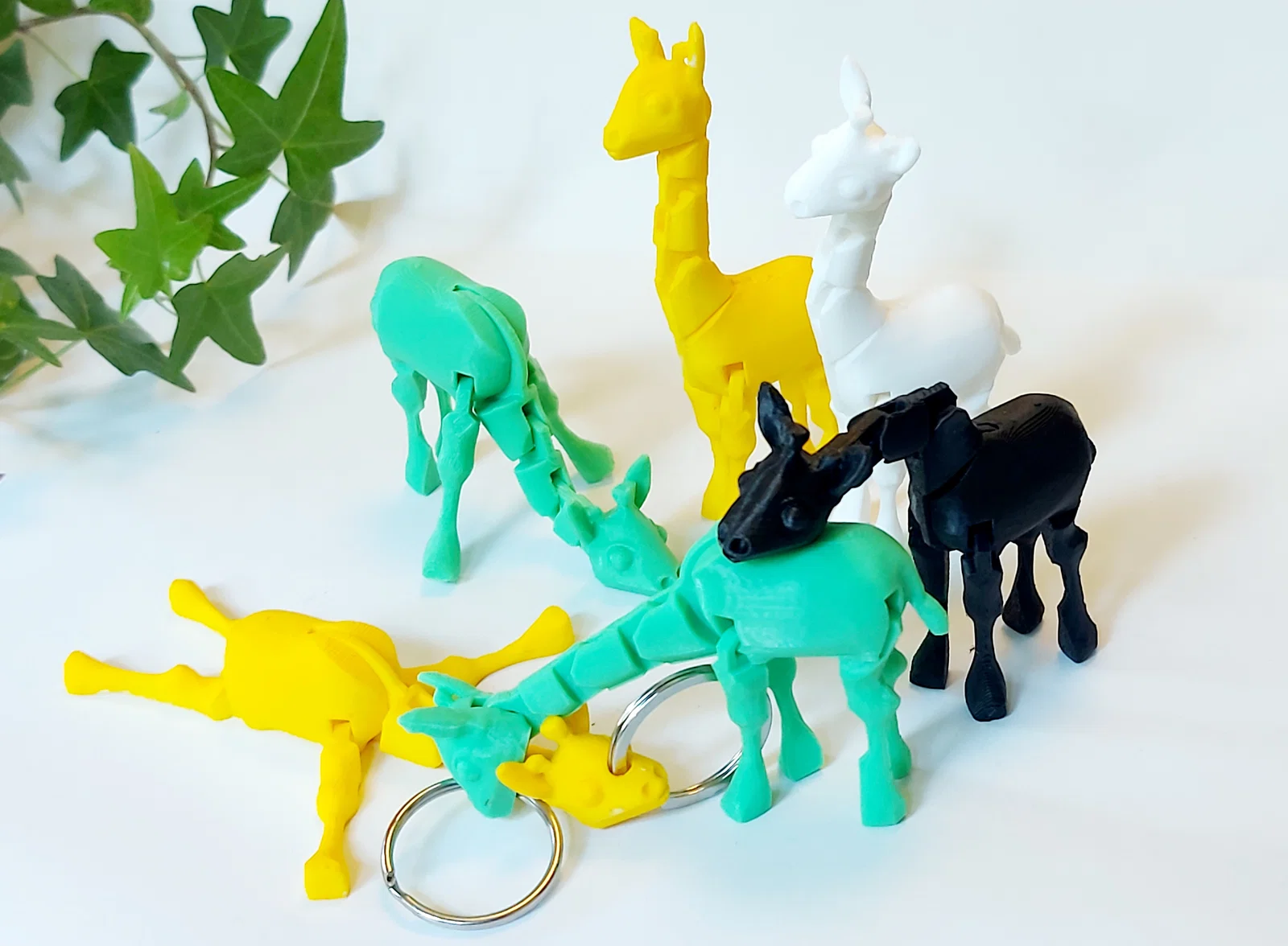 Mẫu hươu cao cổ nhí dạng articulated, in nhanh và vui để làm đồ chơi. Cao khoảng 9cm, chỉ tốn ~9g filament. Có bản có/không có lỗ làm keychain. Print-in-Place, hầu như không cần lắp ráp.