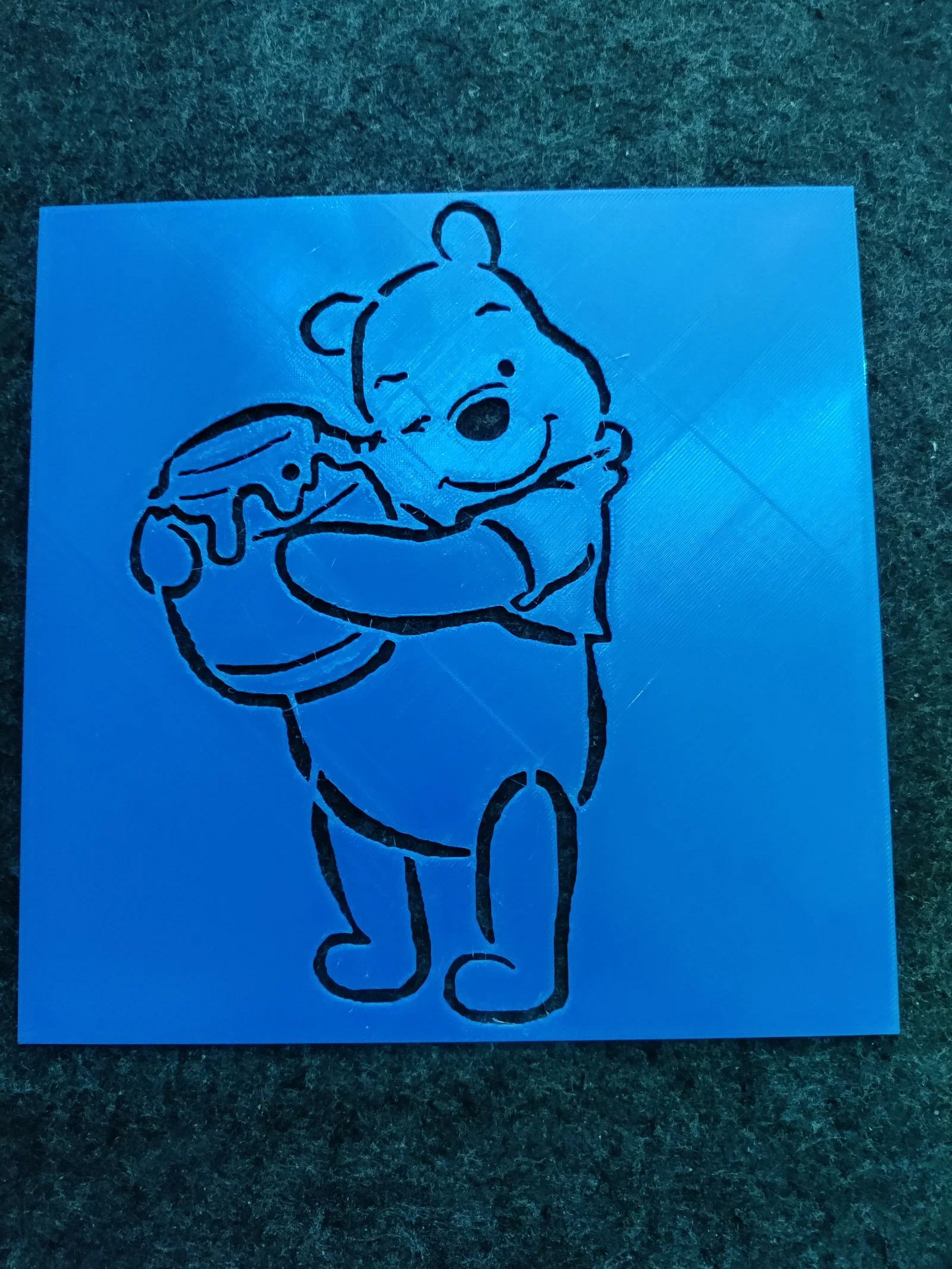 File STL stencil Winnie-the-Pooh của Disney để sơn/paint hoặc spray. Không dùng cho mục đích thương mại; tạo ra để mang lại niềm vui. Khuyến nghị 180×180×1mm, đã test trên Bambulab P1S và hợp Ender 3.