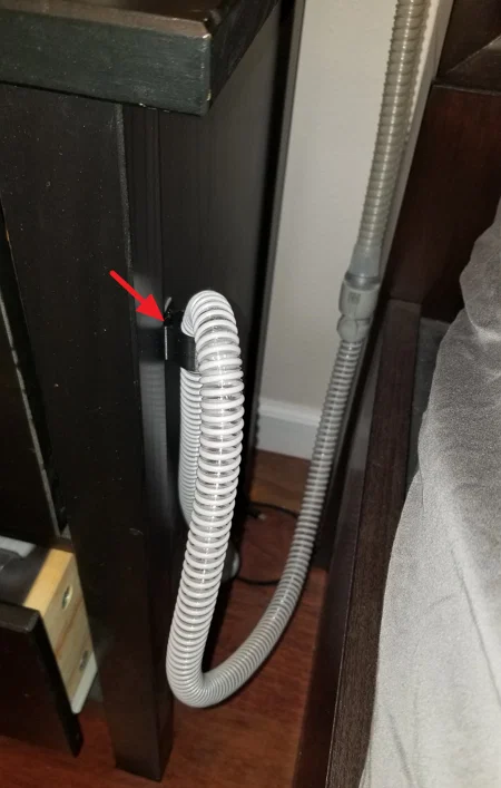 Mình thấy một thiết kế clip làm mình nhớ ra là mình cần kẹp ống (hose clip) cho CPAP để khỏi bị ống cạ xuống sàn và tạo tiếng ồn khi mình ngủ. Mình để máy CPAP trong ngăn kéo tủ đầu giường để đỡ bừa bộn, nên gắn một cái hose clip ở hông tủ đầu giường là hợp lý.