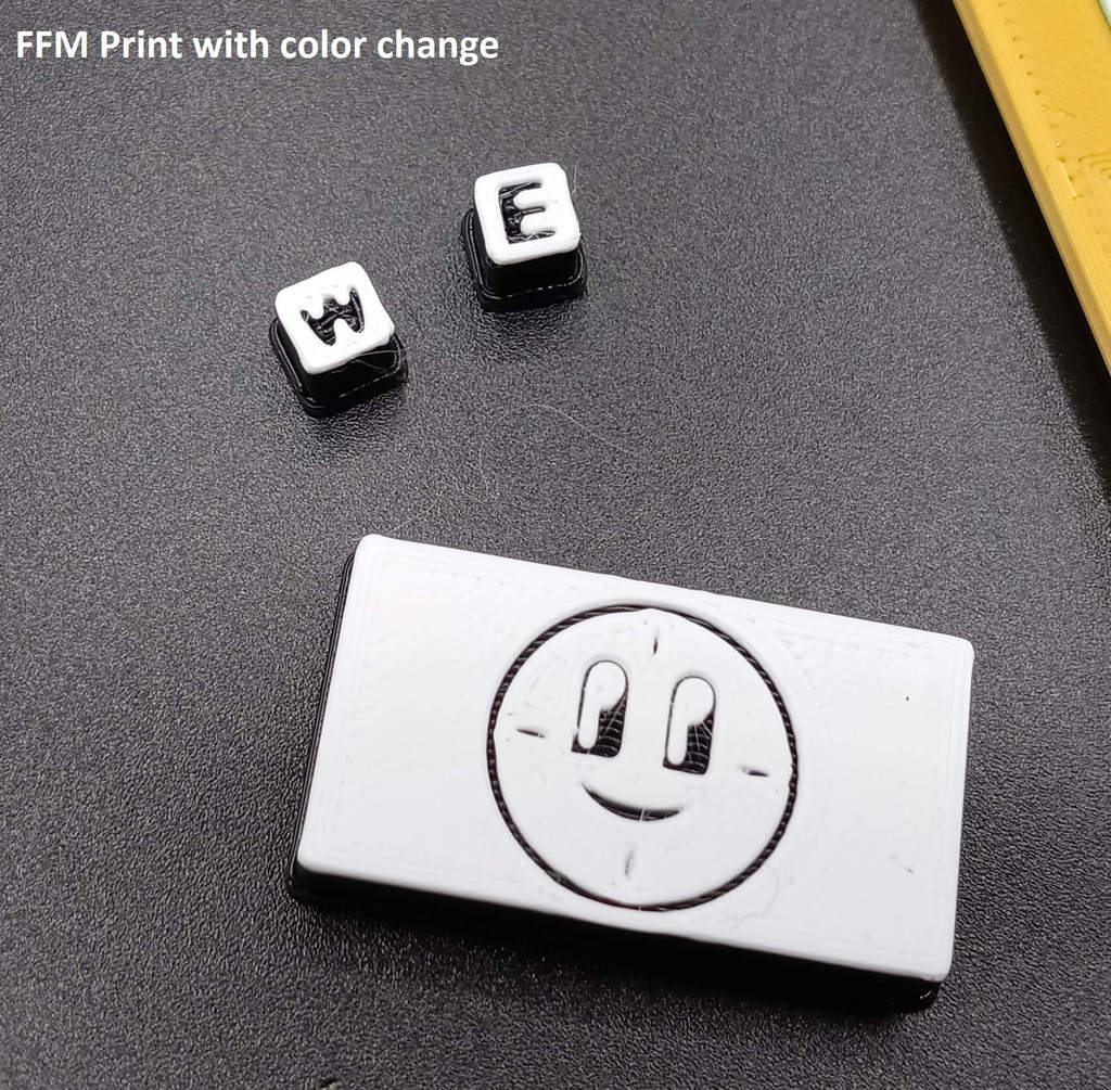 Khi in “White buttons with lettering”: làm 3 lớp đầu (layer height .2) bằng màu trắng rồi đổi màu sang đen, đỡ mất công sơn.