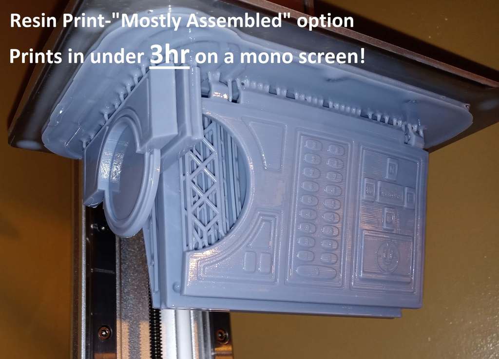 File FFM nên sẽ load sẵn theo orientation tối ưu để in trên bề mặt mịn (tức một số phần sẽ in úp mặt để tận dụng mặt phẳng mịn do mặt tiếp xúc bed tạo ra). Mình đang làm file resin pre-oriented, có drain holes, hollow sẵn và support sẵn, nhưng mình muốn test từng cái trước khi chia sẻ.