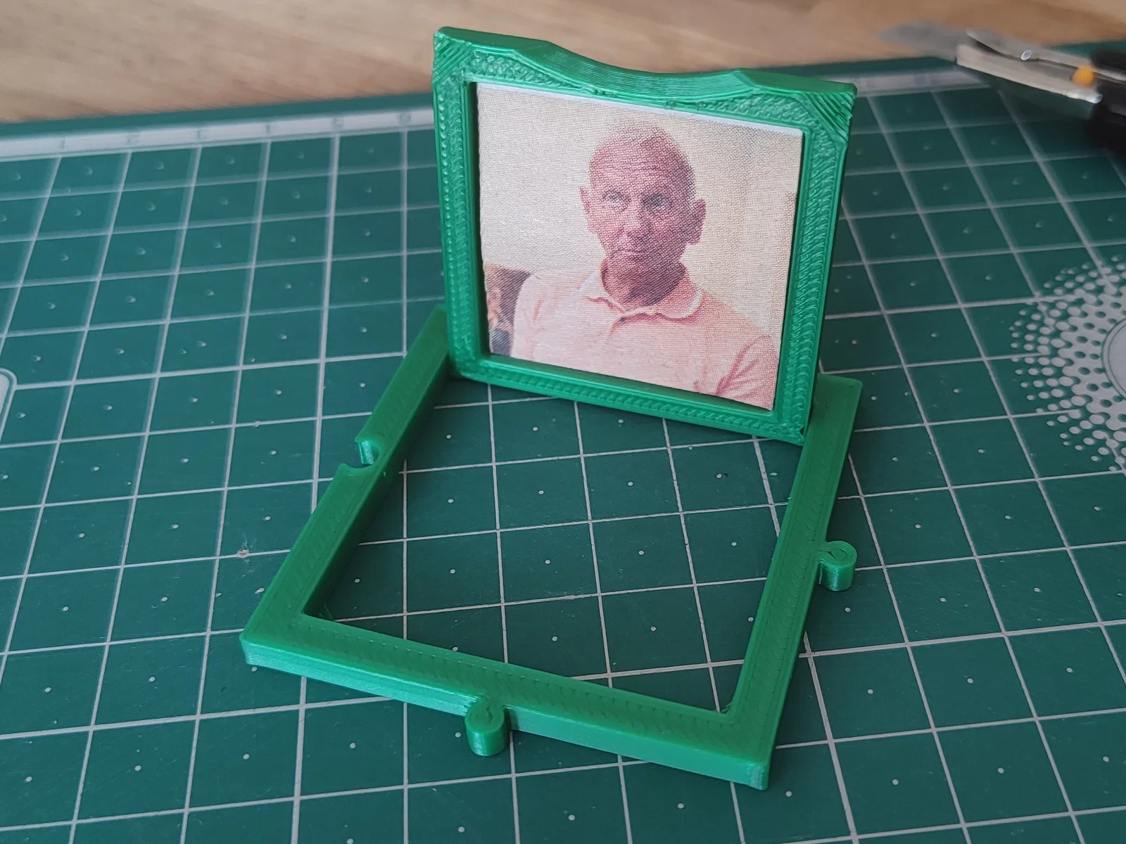 Khung ảnh chân dung in 3D đơn giản, dễ in cho board game "Guess Who?" dạng modular. Thiết kế bản lề print-in-place, độ hở nhỏ; có thể cần ấn tách góc sau khi in. Hỗ trợ ảnh 34x34mm, kèm template cắt ảnh.