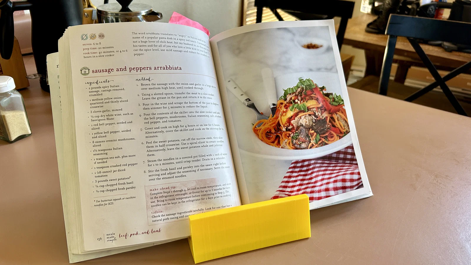 Sách nấu ăn thường khá khó đọc vì hay không chịu mở ra (nhất là sách mới), nên mới có mẫu này! Nó giữ sách nấu ăn ở một góc nghiêng “chuẩn”, vừa giữ cho sách luôn mở, lại còn là thiết kế 2 mảnh để cất gọn cho dễ. Phía sau còn có thêm một khay đựng gia vị tiện lợi để để mấy loại gia vị cơ bản hay dùng xuyên suốt công thức.