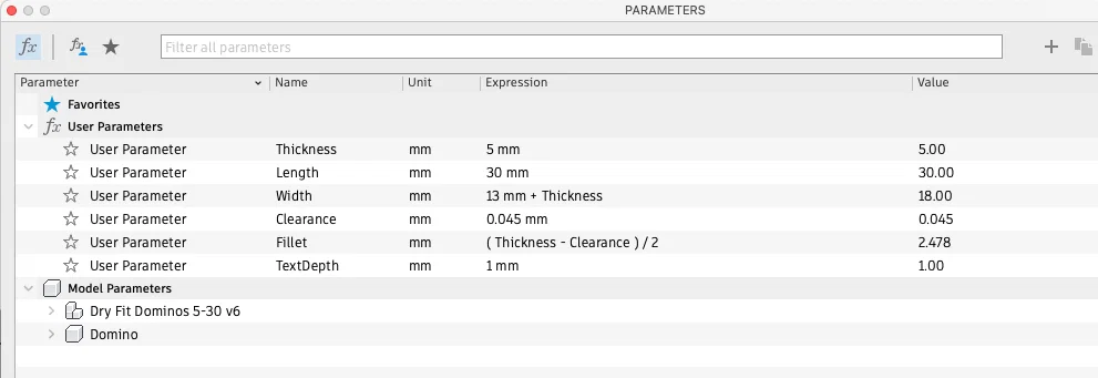 Theo yêu cầu của người dùng, mình đã upload model tham số (parameterized) trong Fusion 360 phòng khi ai cần tinh chỉnh và có dùng Fusion 360. Chỉ có 2 tham số cần đổi, và có thêm một tham số clearance để chỉnh độ khít nếu cần theo máy in của bạn.