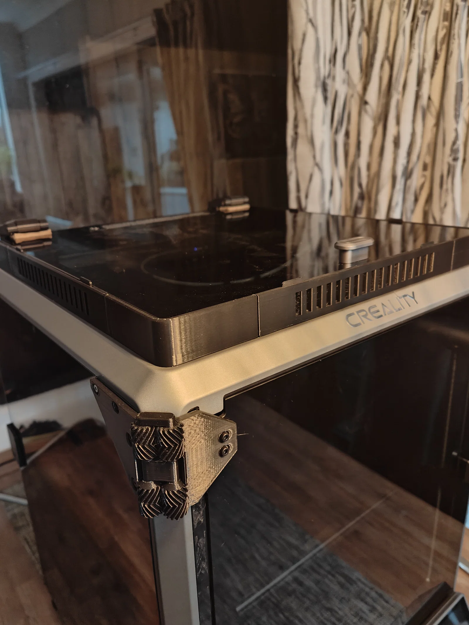 Bản remix cho K1 Max riser: kết hợp riser của Tony F với hinges từ mẫu của Alex Y để nắp có thể bật lên. Cần tháo rear vent slider để tránh vướng. Dùng M4 heated inserts, bu-lông M4x16, in PLA 30% infill.