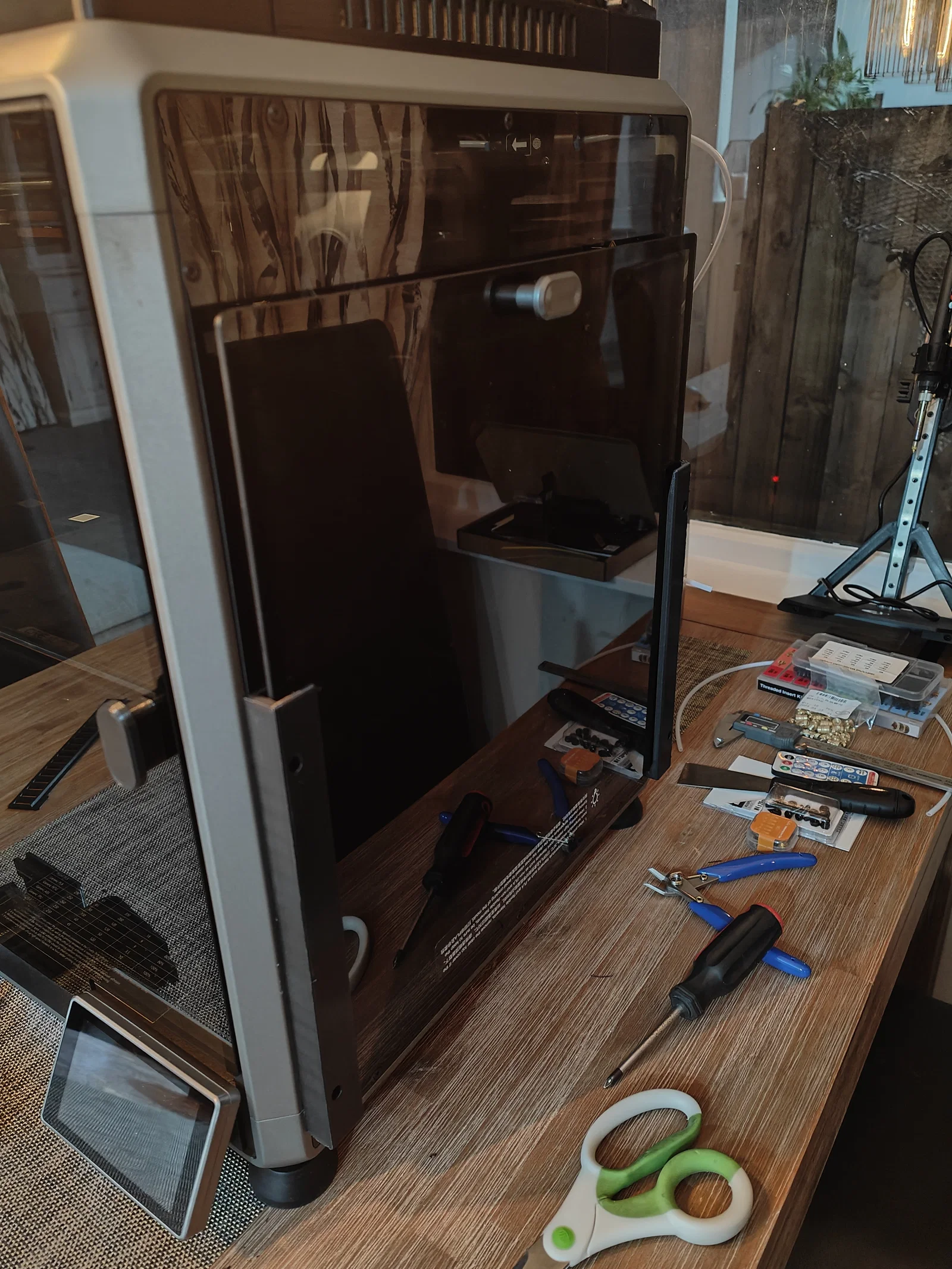 Mình đã in bản remix của Tony F cho K1 Max riser và gắn thêm các ngàm/mount ở một bên để cất nắp (lid) khi tháo ra. Sau đó mình tình cờ thấy mẫu hinged riser của Alex Y, nhưng mình thích riser ban đầu hơn nên đã remix để kết hợp phần bản lề (hinges) từ mẫu của Alex vào riser của Tony.