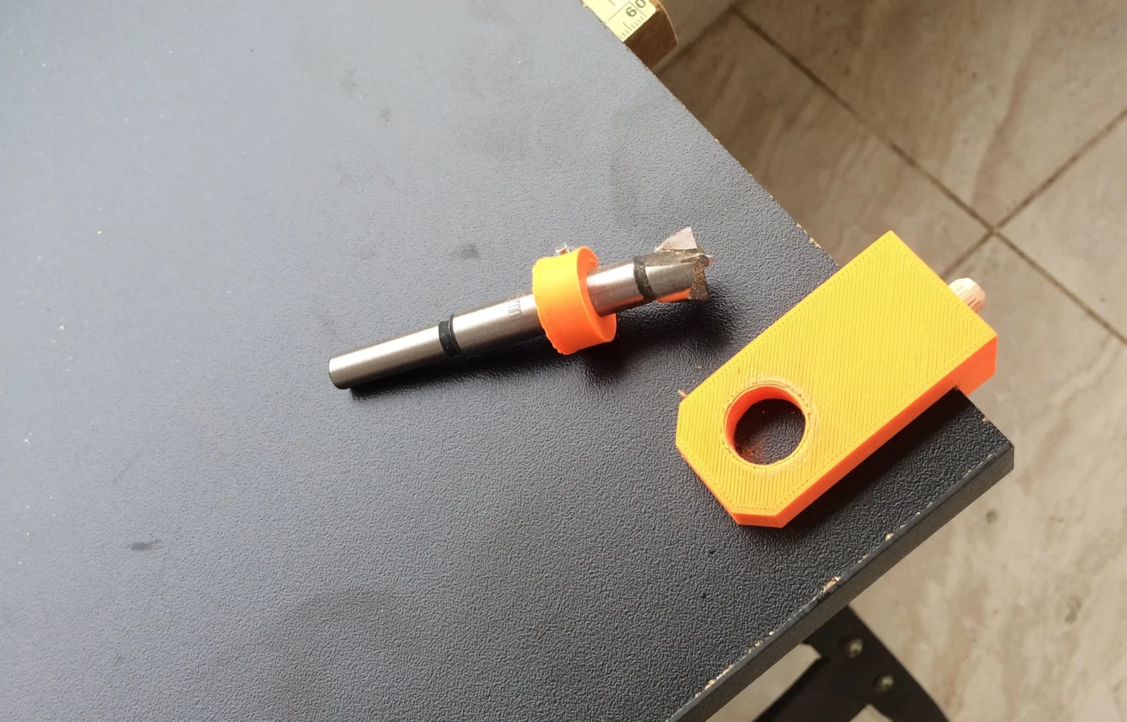 Dụng cụ hỗ trợ canh tâm nhanh và chính xác khi khoan lỗ để lắp minifix furniture fasteners. Cần có dowel jig (ví dụ Wolfcraft dowel master) để sử dụng; cũng có thể thay bằng loại 3D printed tương tự.