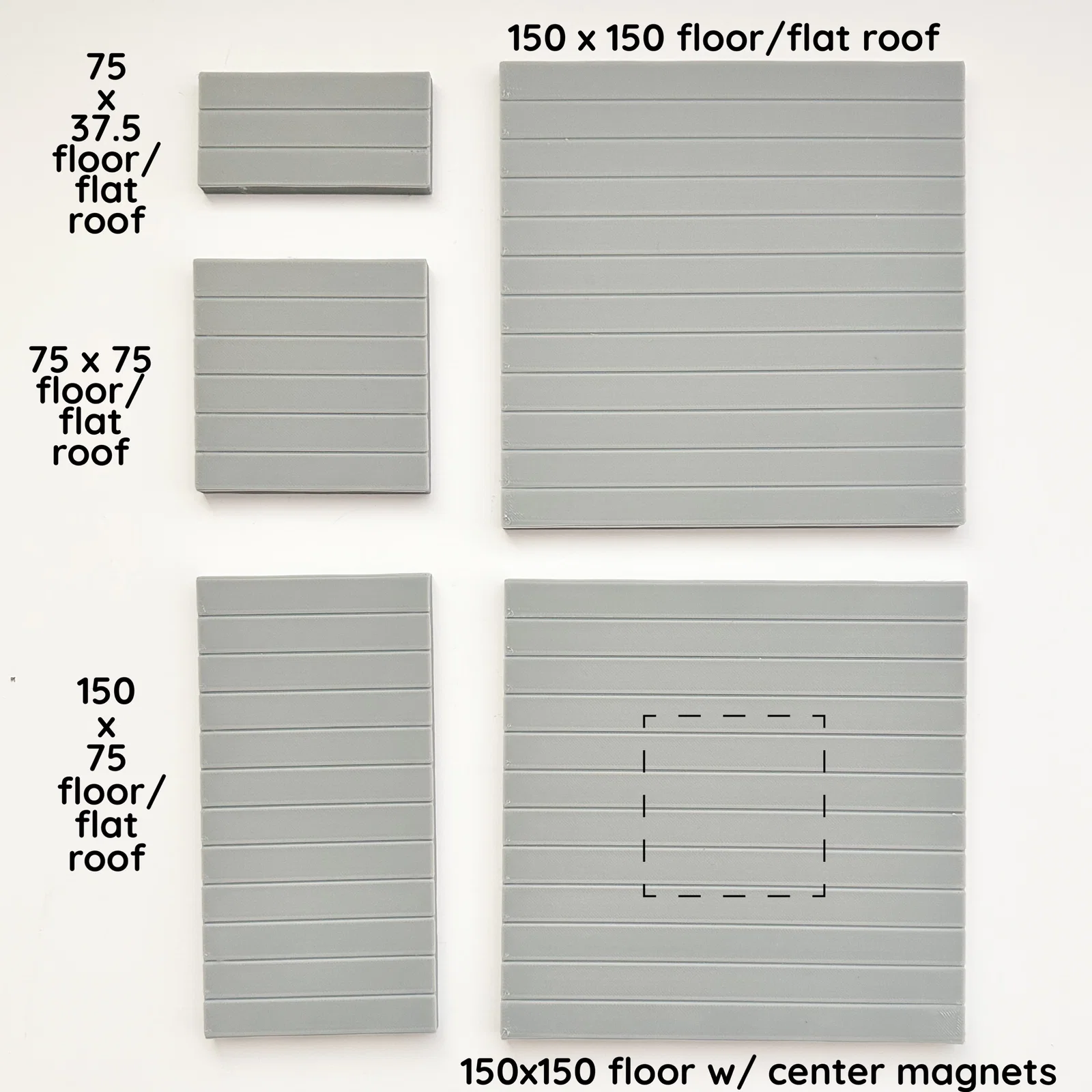 Dưới đây là các miếng sàn và/hoặc mái phẳng cho ngôi nhà ma dùng magnetic tile. Mình thiết kế để dùng với nam châm neodymium kích thước 20x5x2 và 10x5x2. Mình khuyến nghị mạnh là dùng đúng size này. Nếu dùng lớn hơn thì có thể nam châm sẽ không xoay được trong khoang của nó.