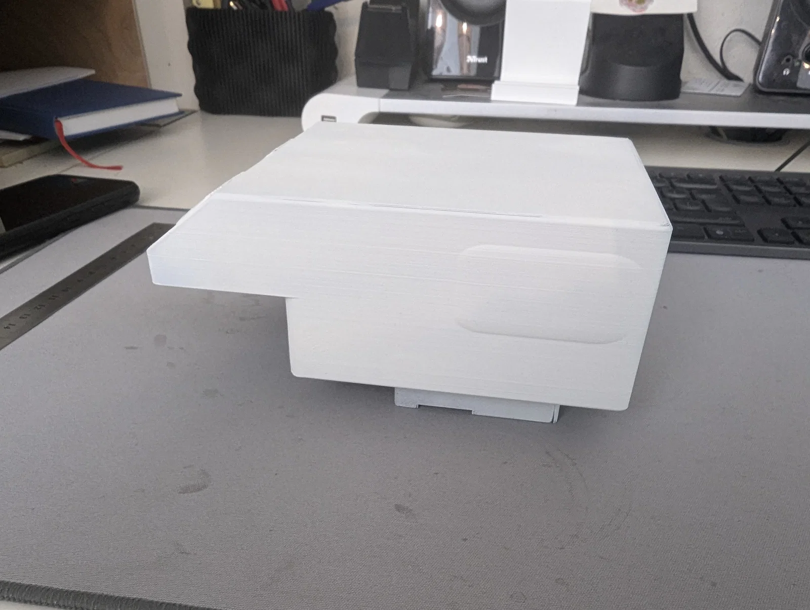 Ảnh có thấy phần dưới bị hơi “rác”, nhưng mình đã chỉnh lại trong file .stl đã upload rồi. In cái này mất 19 tiếng.