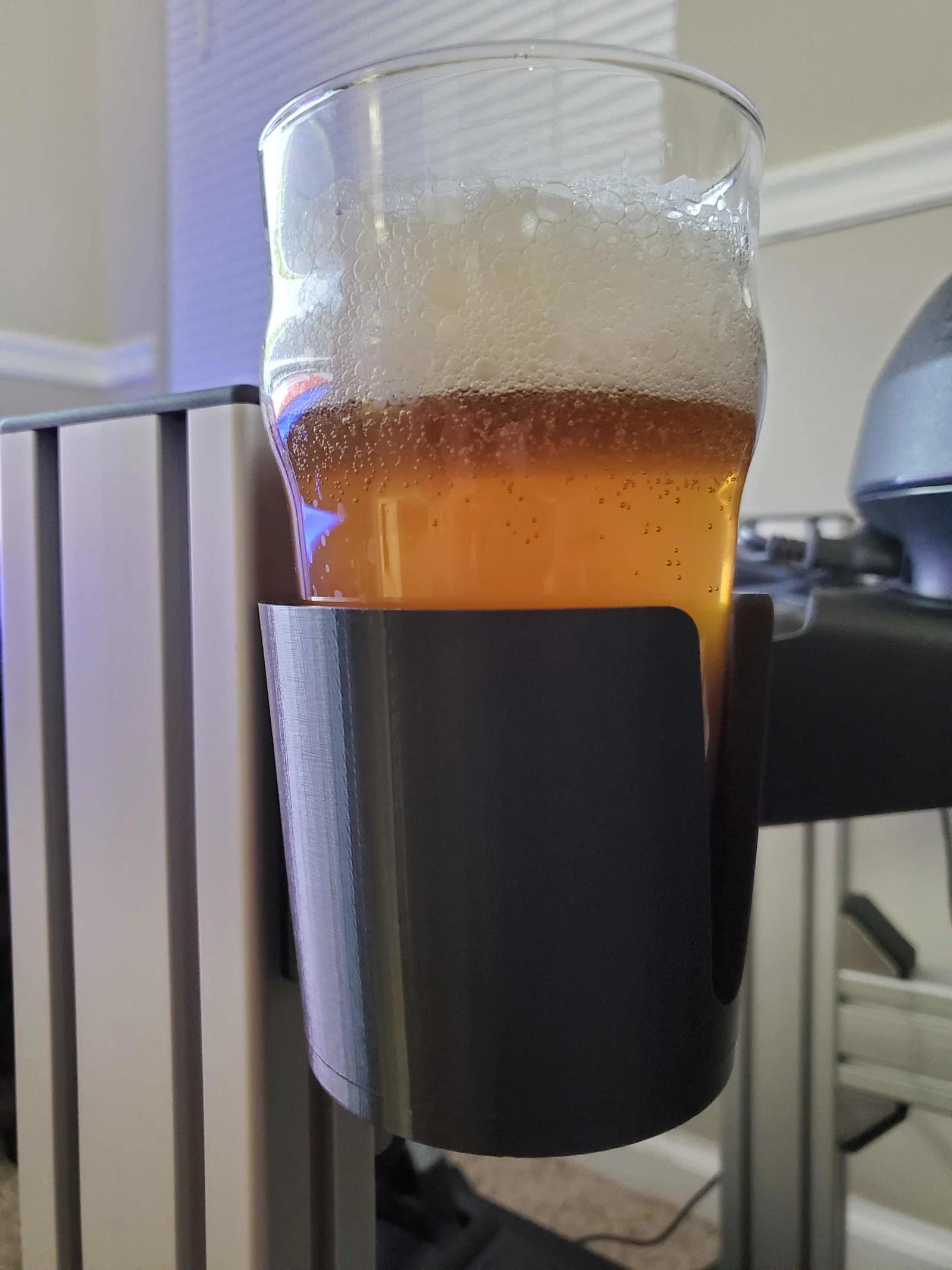 Bản thiết kế lại của Sim Racing Cup Holder để dùng với bulông M8. Gắn lên 2020 Aluminum Extrude bằng 2× M8 x 15mm Socket Head Bolts và 2× M8 T-Nuts, phù hợp cockpit sim racing để giữ lon và ly pint.