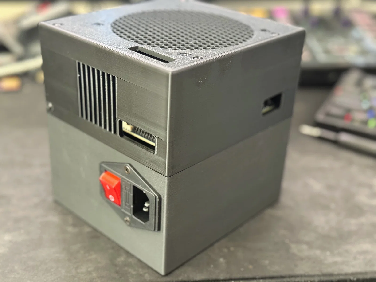 Case cho Odroid H4 Plus/Ultra với 4 cổng SATA, thiết kế để gắn tối đa 4 SATA SSD hoặc HDD 2.5/3.5 inch và PSU (LOP-200-18 hoặc EPP-120S-15). In không cần support, có bản cập nhật mount HDD 3.5 inch.