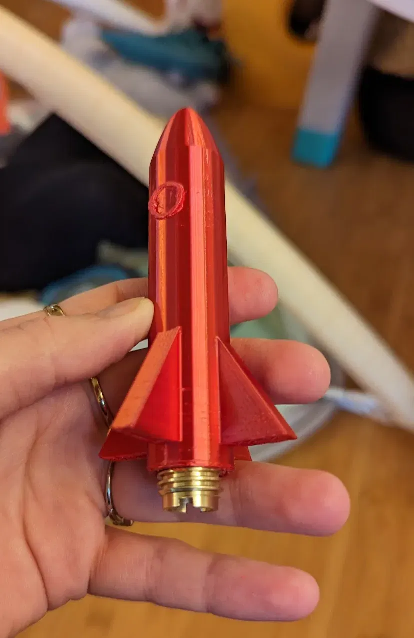 Tay cầm vòi kegerator hình dạng như một chiếc tàu tên lửa nhỏ. Vít vòi keg bên trong được làm bằng vít EZ Lok 400-6 của cgreeni2.