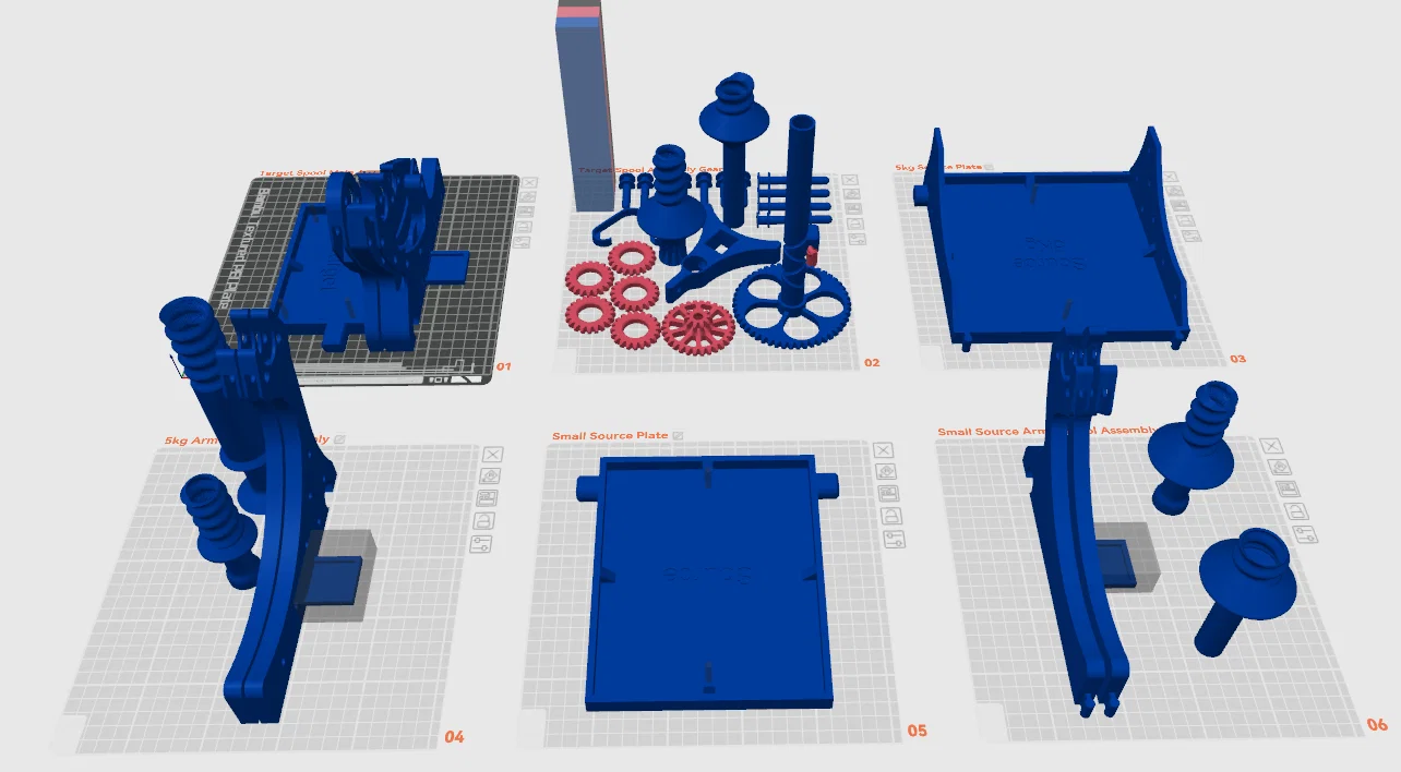 Mình khuyên nên in các phần chính bằng PLA+ (lên Amazon kiếm, Polymaker có nhiều màu đẹp) để tăng độ bền. Còn mấy bánh răng thì mình in PETG vì muốn nó cứng cáp, mạnh mẽ như một ly Guinness xịn (ý là giàu sắt đó). Bạn cũng sẽ cần 19 cái bearing cho bộ này—nhiều thiệt, nhưng đáng công lắm.
