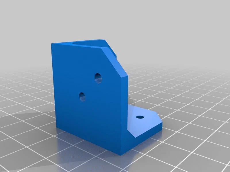 Ke góc (corner bracket) kích thước 30×30×30mm, dày 3mm, lỗ bắt vít 3mm. Thiết kế để gắn từ phía “bên trong” của góc, phù hợp nối tấm polycarbonate 4mm làm enclosure cho máy in.