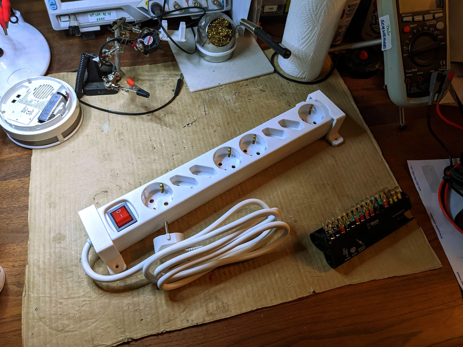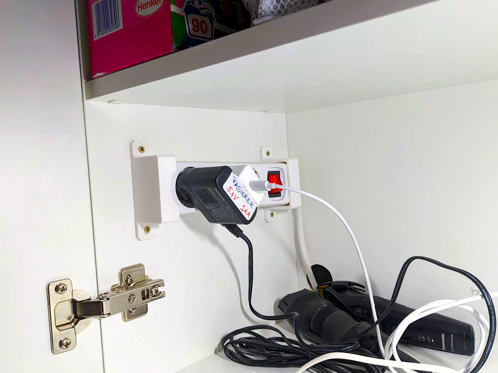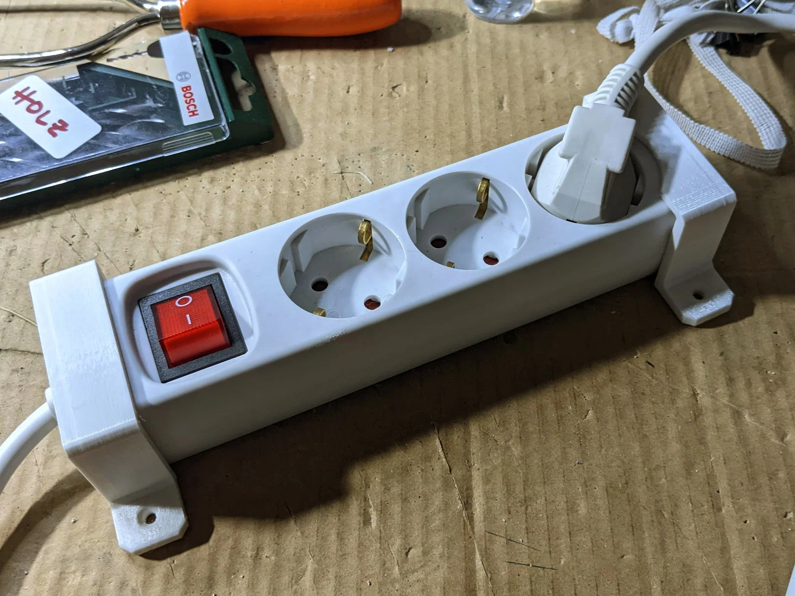 Chỉnh sửa: Mình đã thêm file OpenSCAD “power-strip.scad”, có tính tham số (parametric) ở mức cơ bản và có thể chỉnh dễ để dùng cho các loại power strip khác. Xem phần comment gần đầu file.