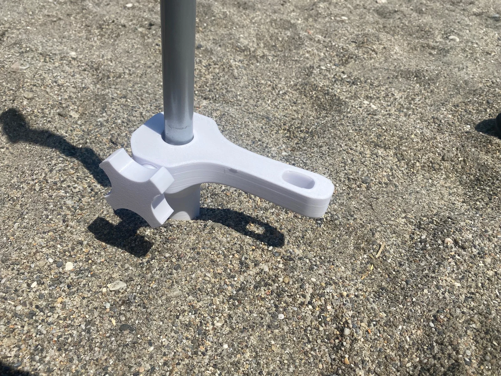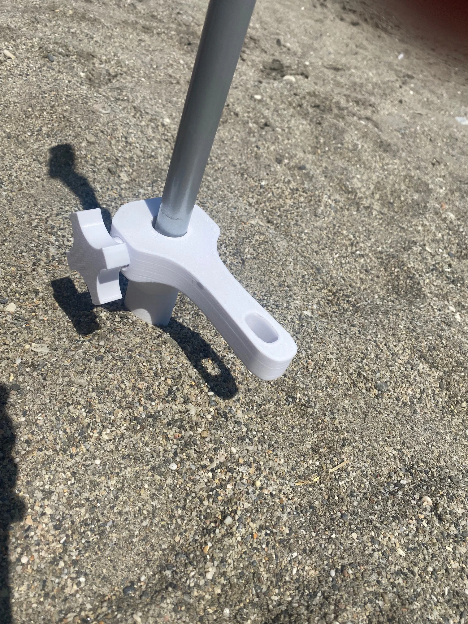 Mẫu neo cát dễ in cho dù bãi biển, giúp cố định cán dù trên cát. Phù hợp cán dù đến khoảng 24mm (lỗ 25mm). Khuyến nghị in úp ngược, không cần supports và dùng PETG/filament chịu nhiệt với nhiều walls.