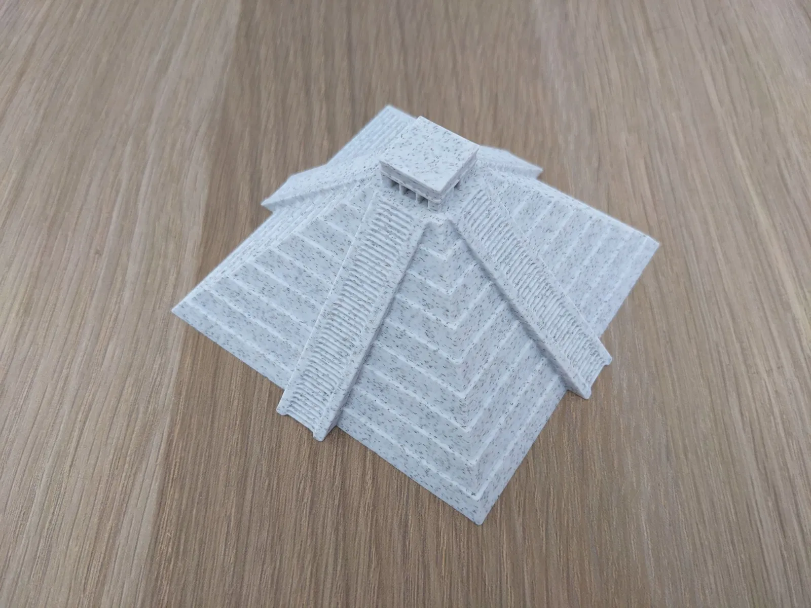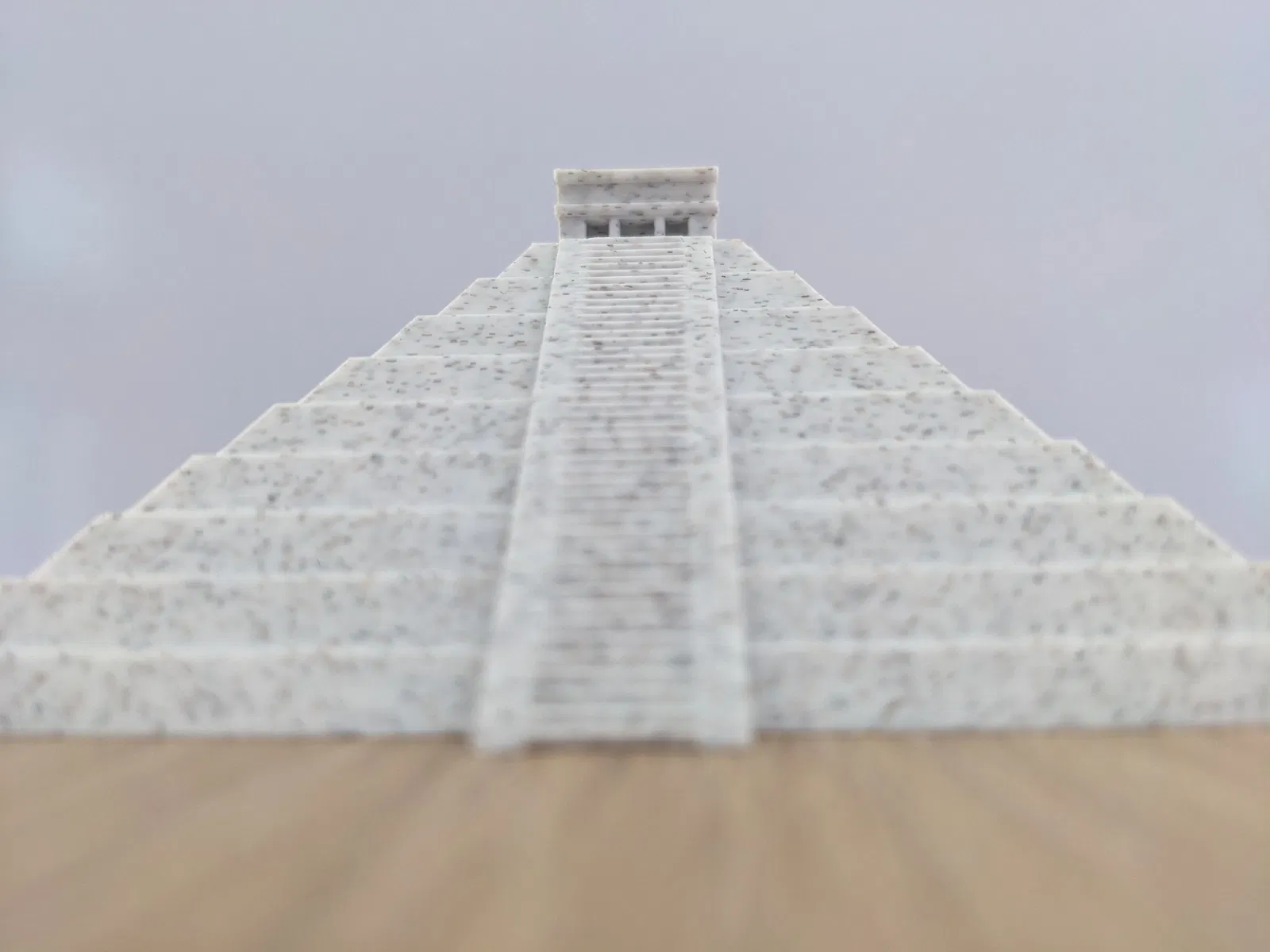 Mô hình thu nhỏ của El Castillo, Đền thờ Kukulcan tại Chichen Itza. Đây là mô hình của riêng tôi từ đầu năm 2015, được đăng tải lần đầu trên Thingiverse, thiết kế từ một cuộc đi bộ rộng rãi xung quanh nó trên Google Maps.