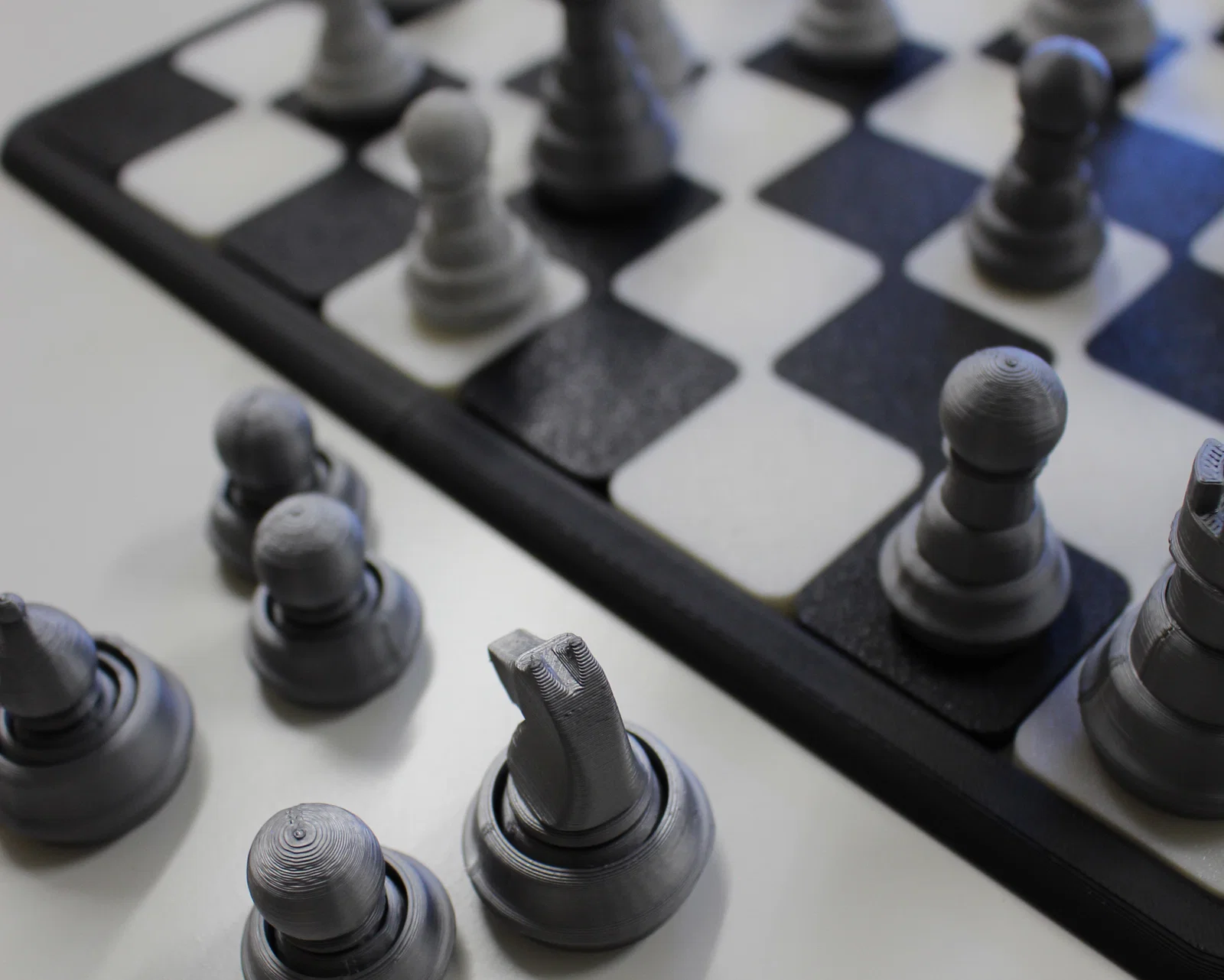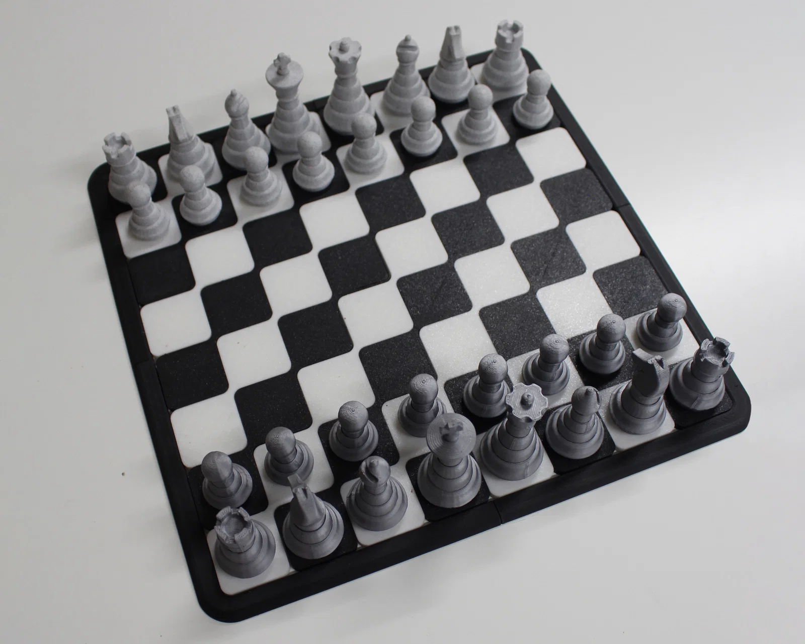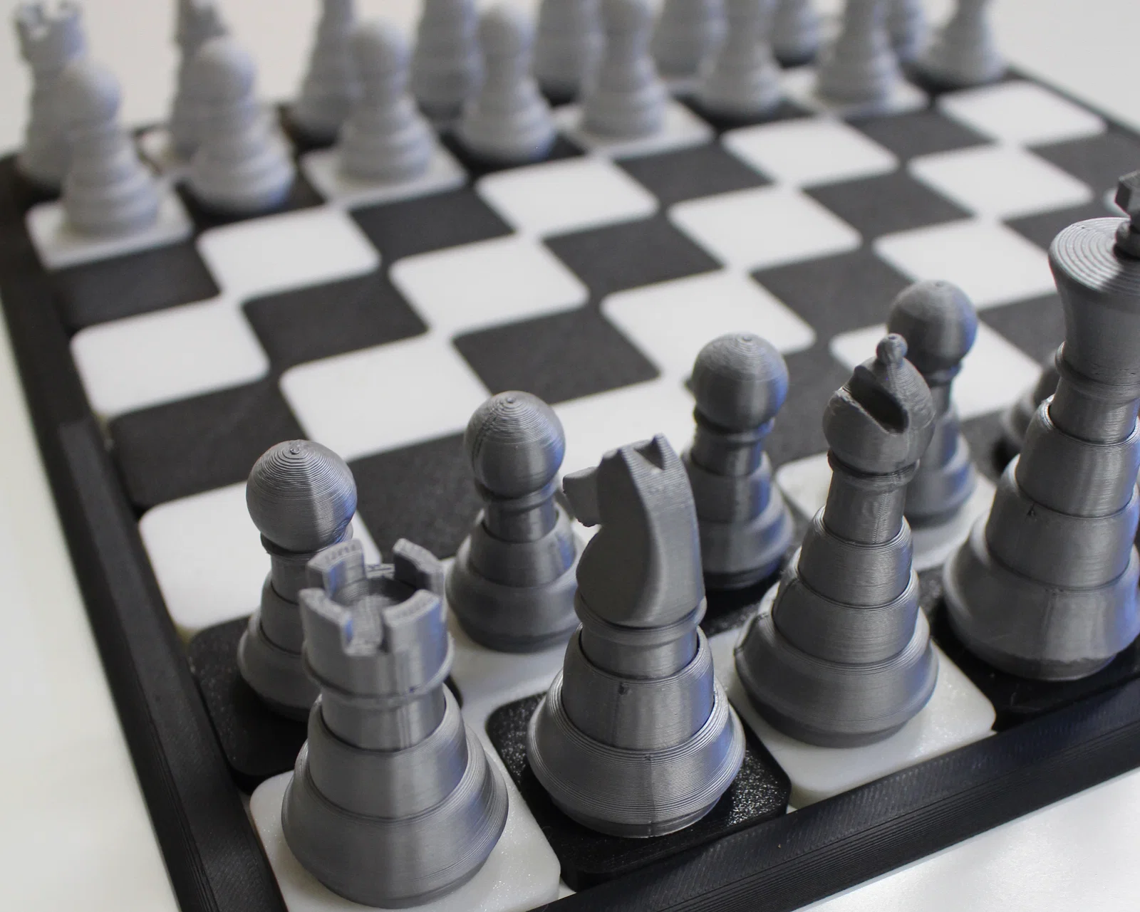 Mỗi quân cờ được chăm chút để in không cần supports, trừ quân mã (knight) thì mình dùng tree supports để ra được phần hoàn thiện “xứng tầm” của nó. Còn bàn cờ cũng được làm riêng với kiểu dáng hiện đại, dễ in, rất hợp với ai vừa thích đẹp vừa cần tính thực dụng.