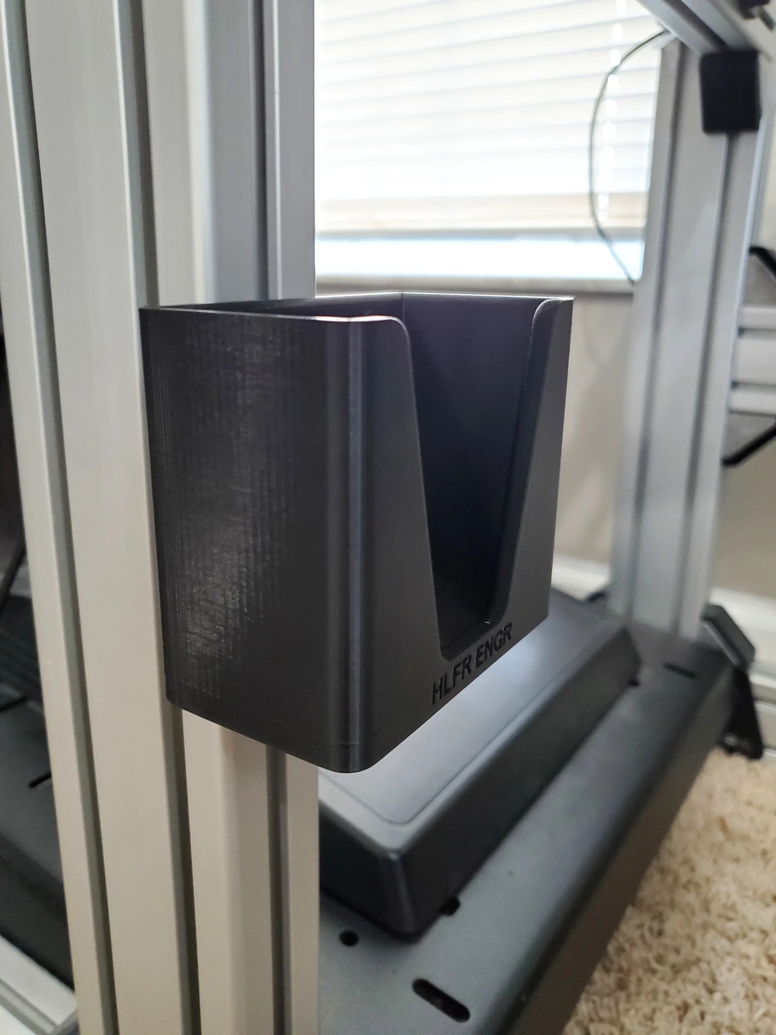 Giá đỡ điện thoại/thiết bị điện tử cho cockpit sim racing, lòng trong 80×40mm. Có lỗ ở phần đế để luồn dây sạc. Gắn lên nhôm định hình 2020 bằng 2 bu lông M6×15 và 2 M6 T-Nuts.