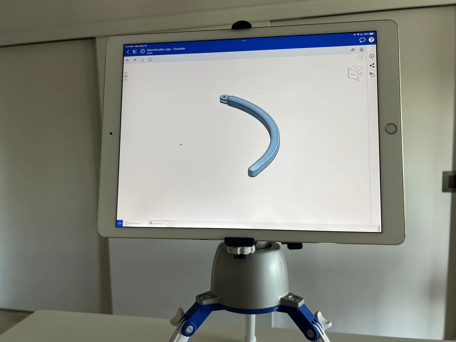 Dùng file DoomScroller Parametric Clamp.f3d, bạn có thể tùy biến kẹp theo kích thước thiết bị. Fusion360 miễn phí cho mục đích cá nhân.