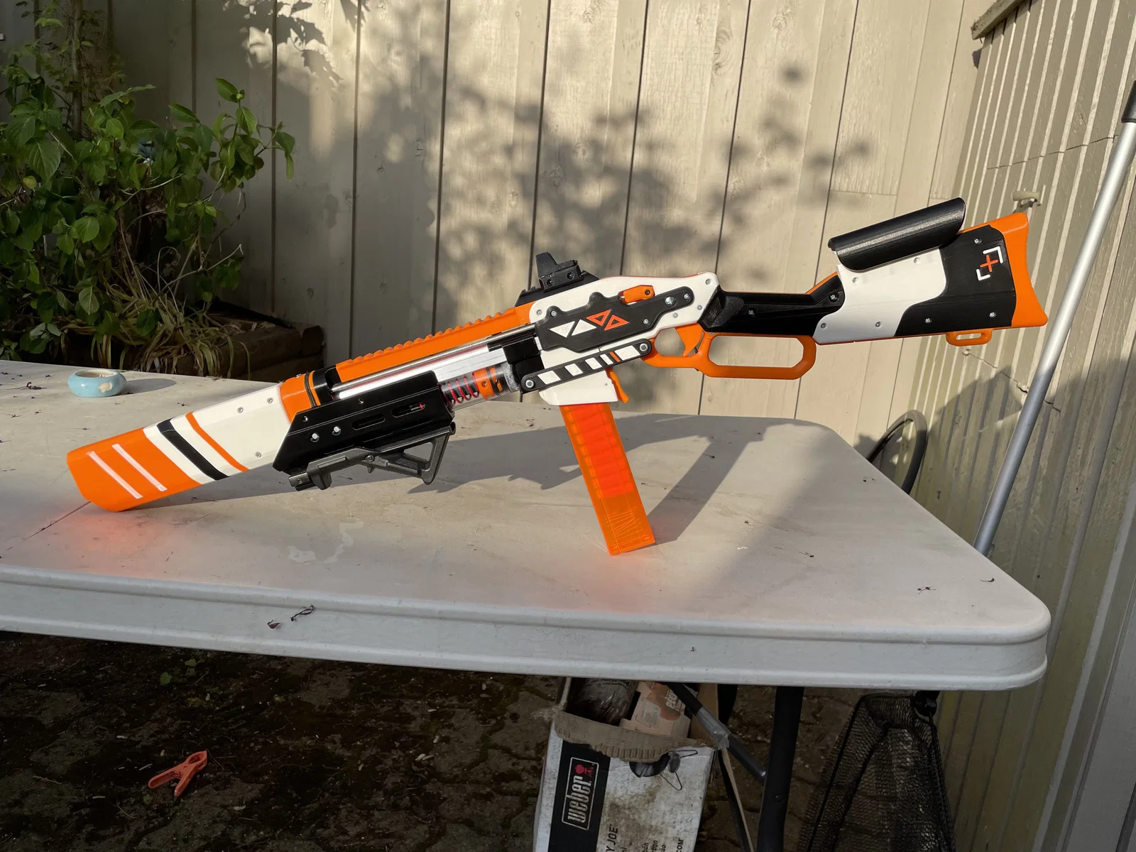 Bộ nhiều chi tiết cosmetic của SillyButt’s SLAB đã được chỉnh sửa để hợp phong cách Asiimov. In như các part SLAB thông thường; riêng Muzzle A đặt đầu trước xuống build plate và supports chỉ chạm build plate.