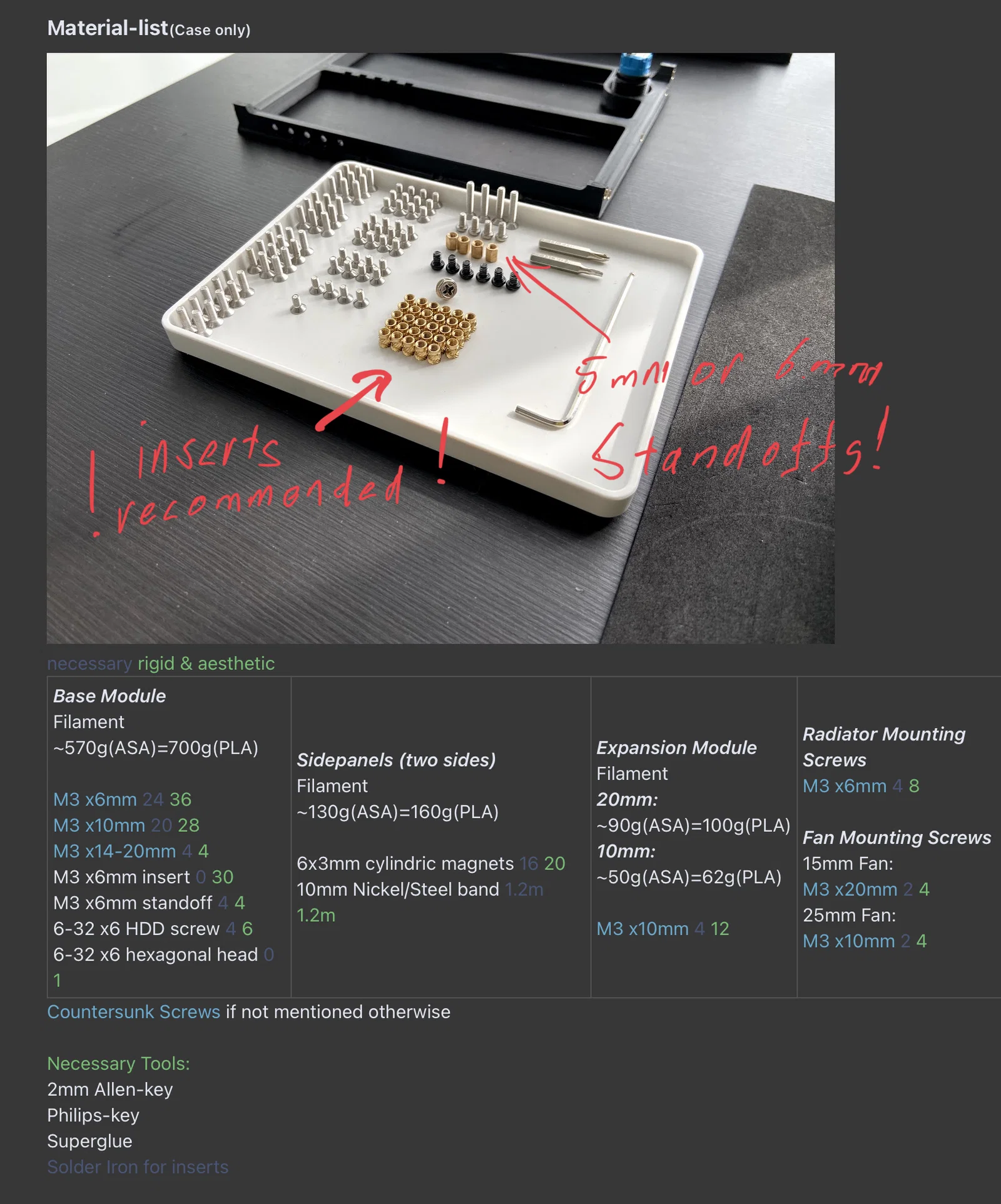 Cosmetics +40h: ☐ Front panel ☐ Grills ☐ Sidepanels ☐ Feet ☐ Hats