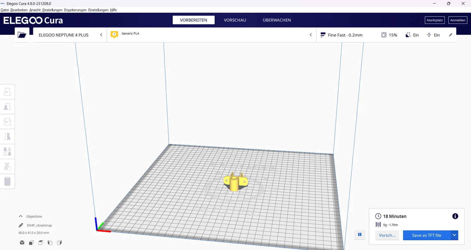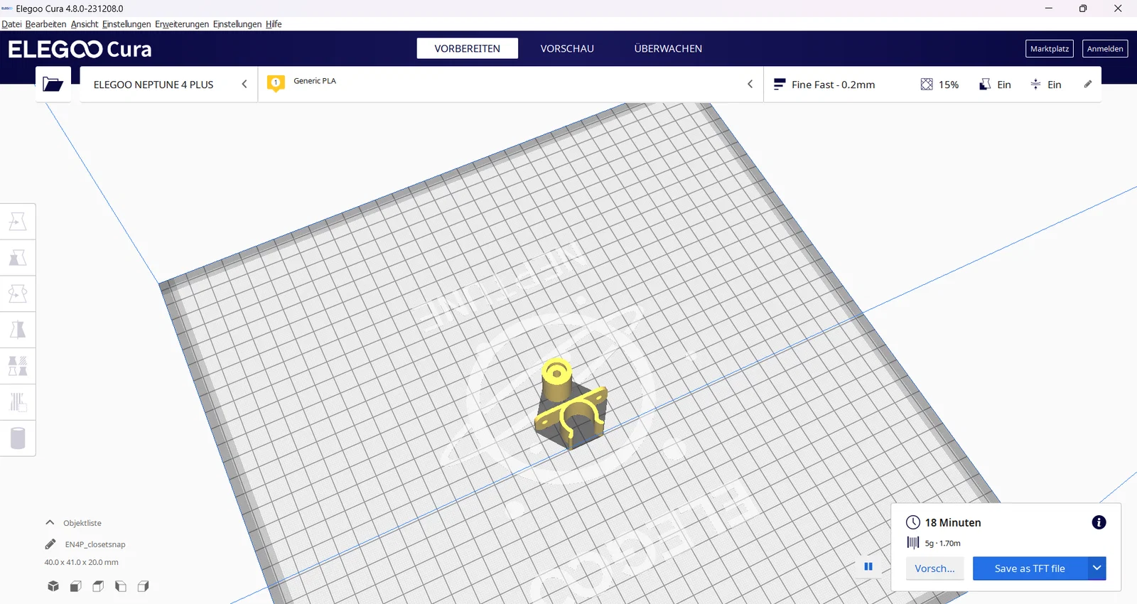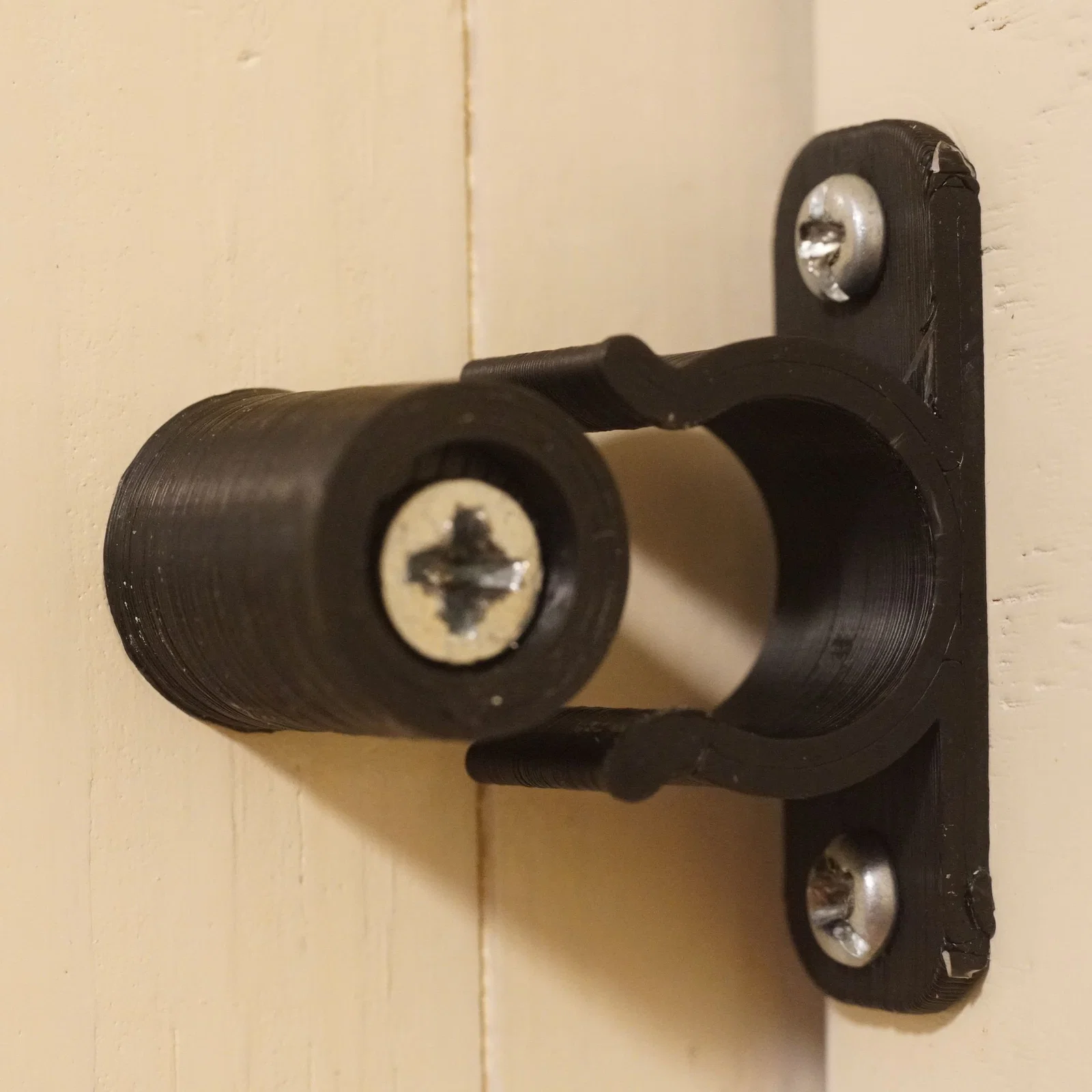 Cơ chế chốt đóng tủ đơn giản cho tủ quần áo: in chi tiết, bắt móc vào mặt trong tủ bằng 2 ốc, rồi canh vị trí trụ để khi đóng cửa có tiếng “click” nhẹ và cửa tủ khó tự bật mở hơn.