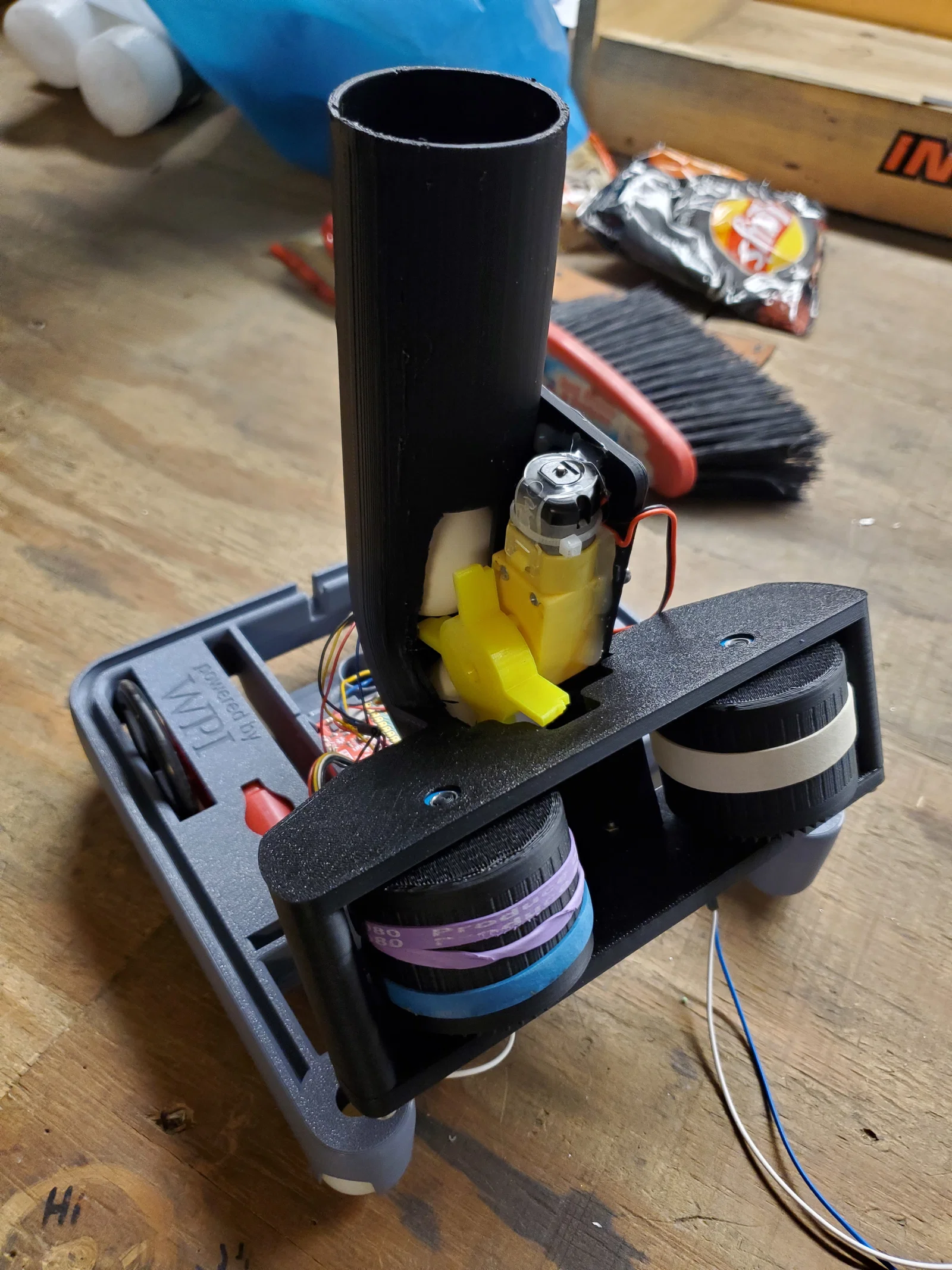 Robot sử dụng hai động cơ cỡ 130 để truyền động cho các bánh đà 50mm với tỉ lệ 1:5. Để nạp bóng, thiết bị sử dụng một động cơ TT Motor.