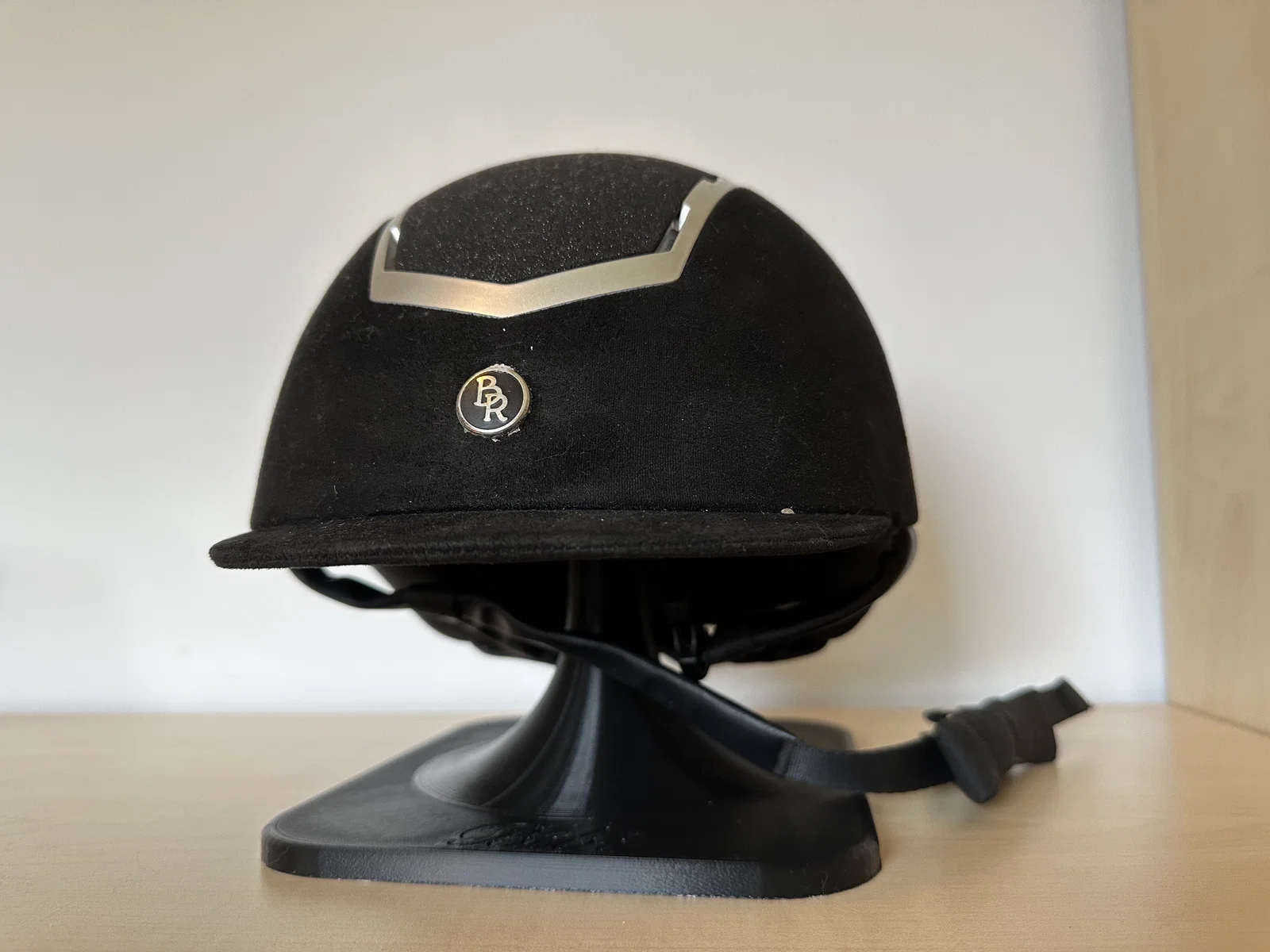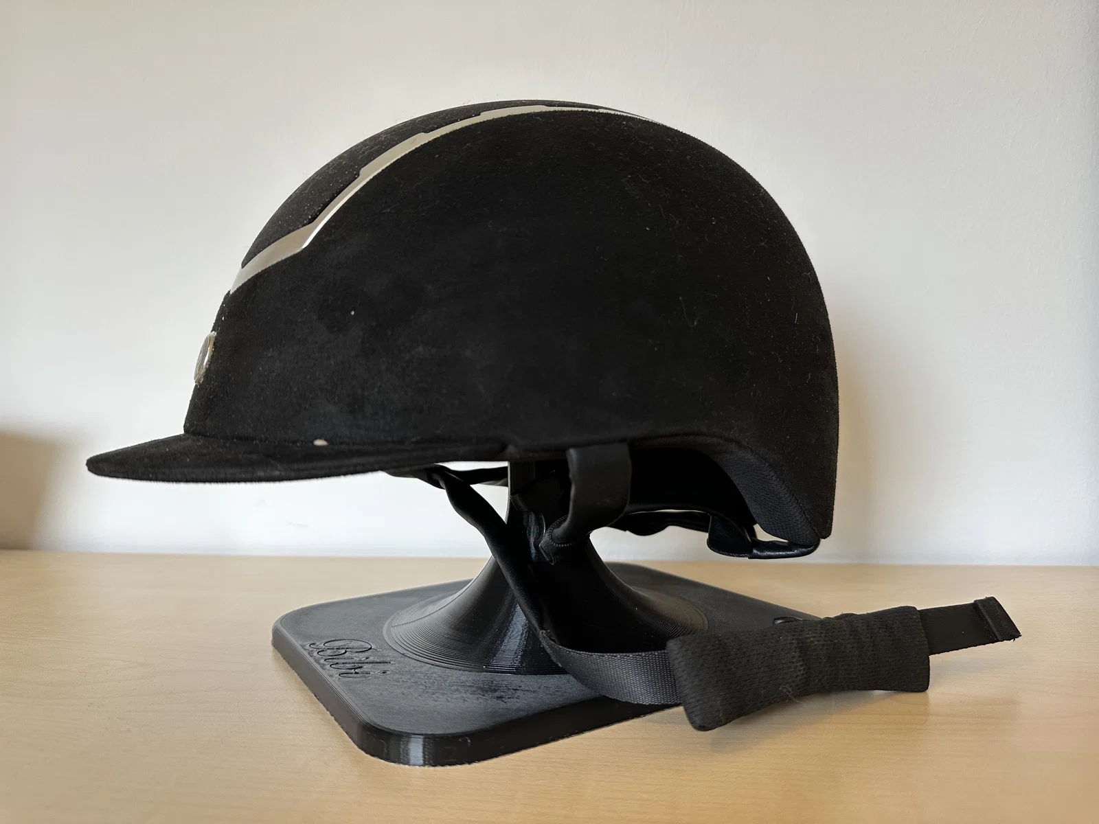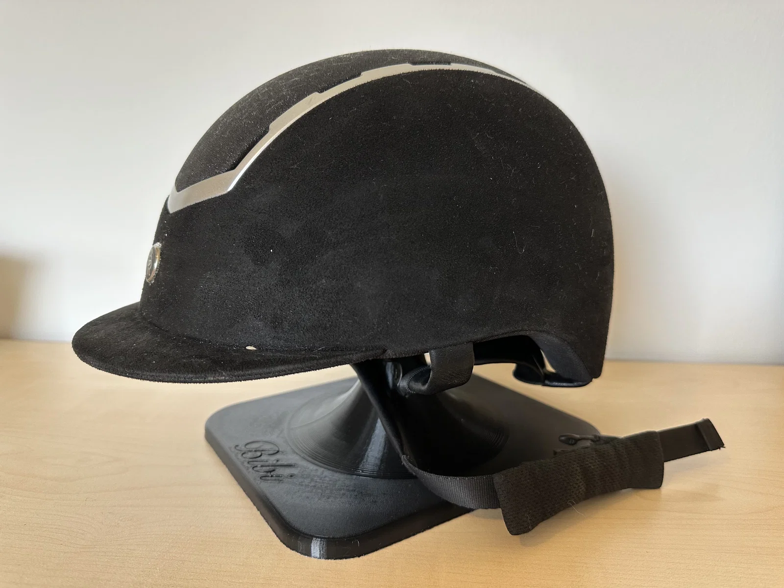 Mẫu giá đỡ mũ bảo hiểm (equestrian) thiết kế “over engineered” để phơi khô, cất giữ hoặc mang đi. Đế lớn chống lật, vòm trên thoáng giúp mũ nhanh khô, có tuỳ chọn emboss tên và file kèm để chỉnh sửa.