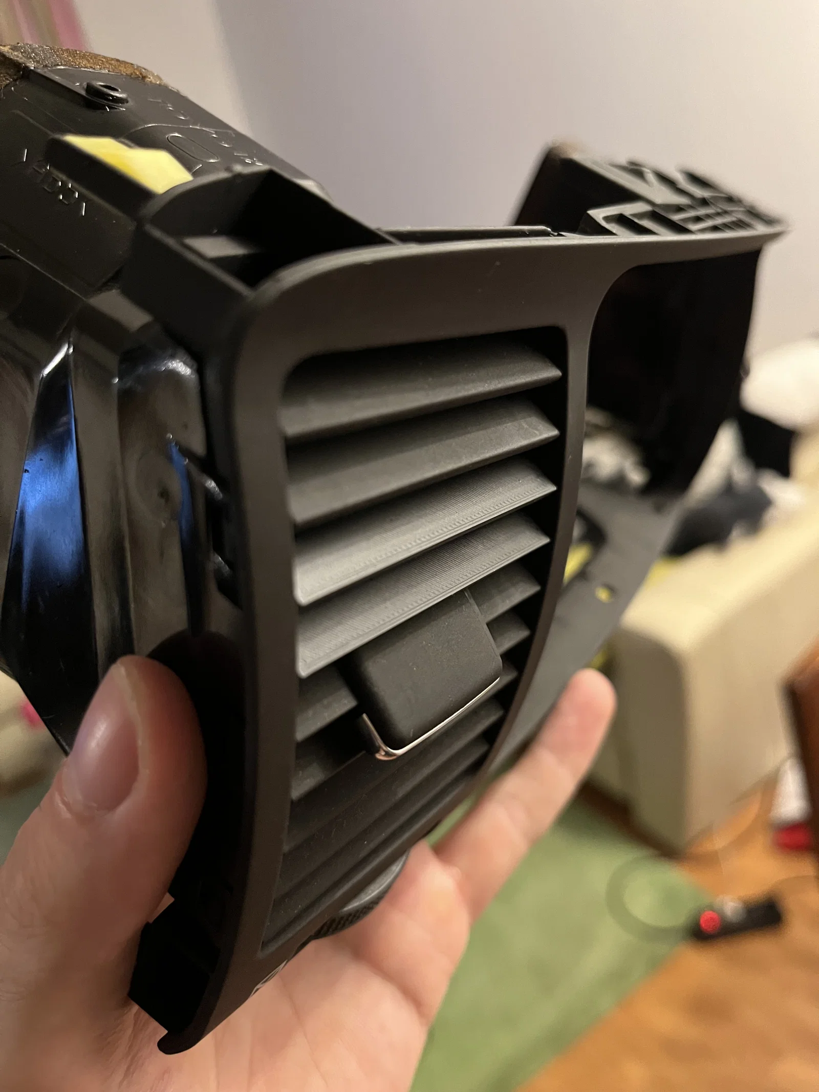 Mình có chiếc Toyota Corolla đời 2005, chủ trước hay gắn điện thoại lên các lá gió (AC air vent blades) nên làm gãy mất 2 lá. Mình không tìm thấy chỗ nào bán riêng lá gió, mà thay nguyên cả cụm cửa gió thì không kinh tế, nên mình quyết định tự thiết kế lá gió để thay cho các lá bị gãy.