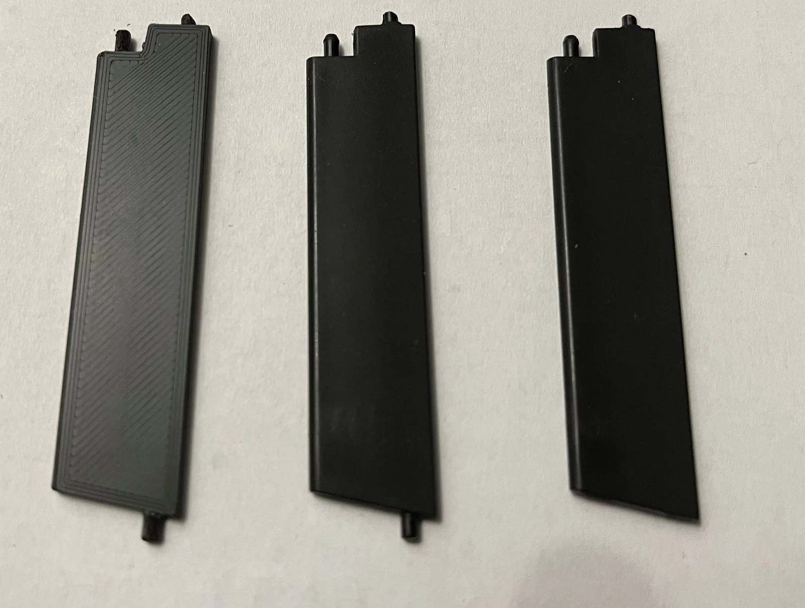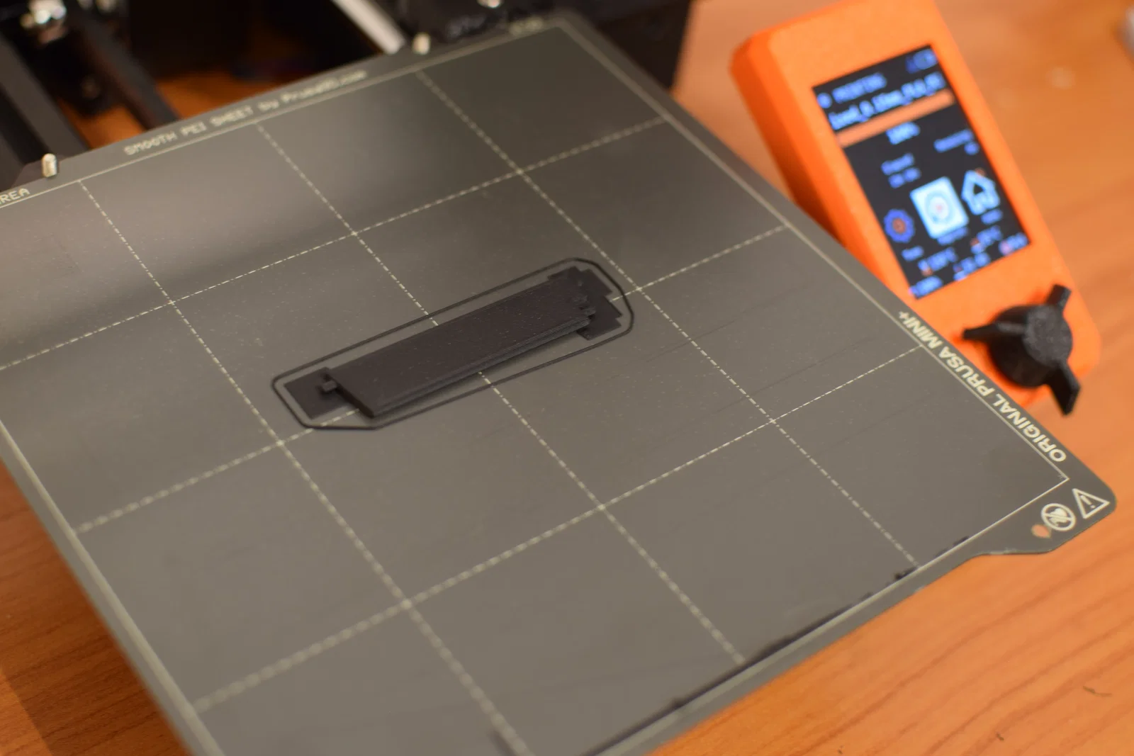 Mình dùng eSun matte Black PLA, màu khá sát với màu zin. Nếu dùng lâu dài thì mình khuyên nên in bằng ABS vì PLA có thể bị biến dạng vào mùa hè. Mình in theo chiều nằm ngang và bật support vì phần chốt (pins) tạo ra một chút overhang.