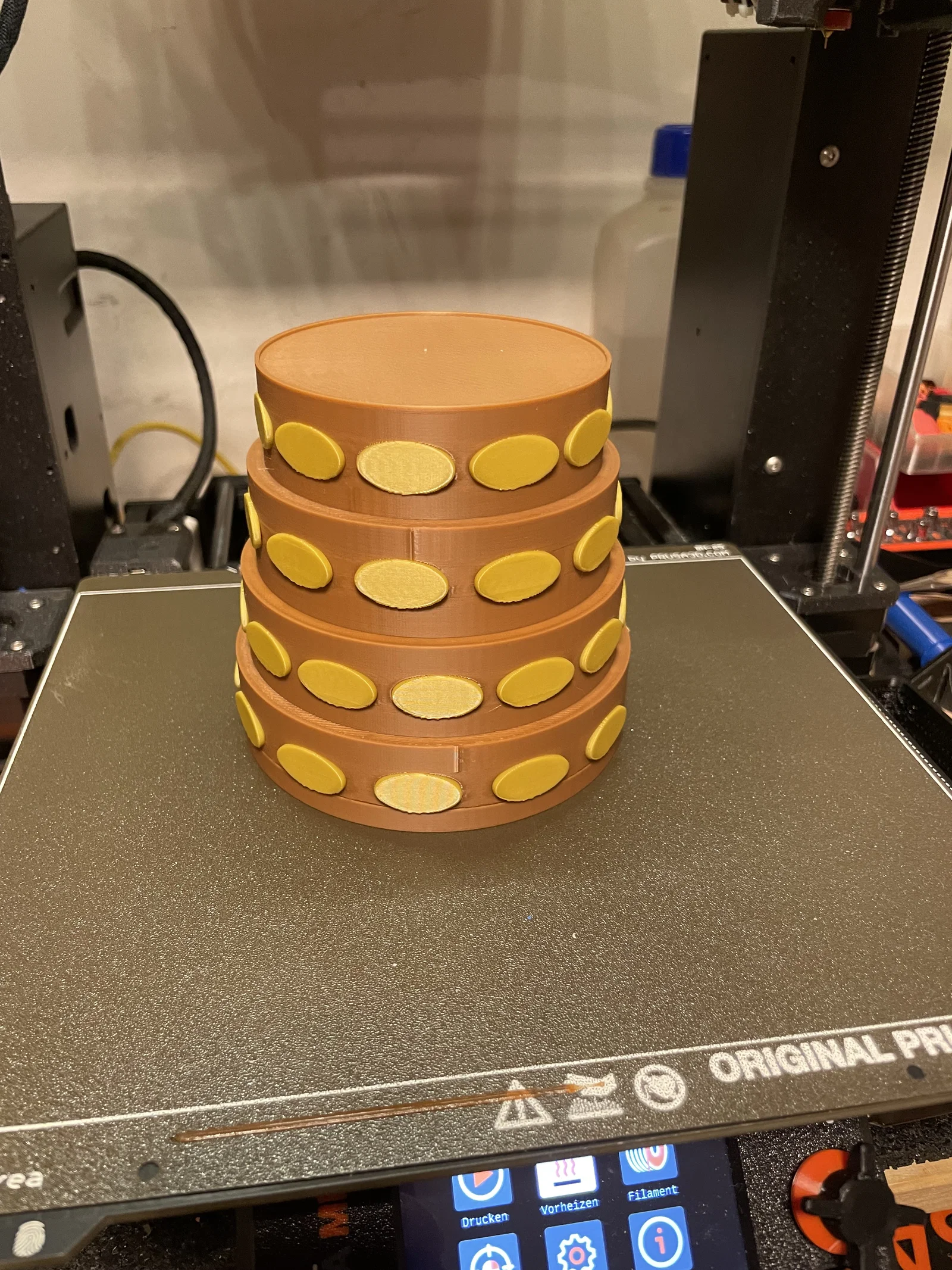 - Chia file thành các phần nhỏ (cúp và đế) để in riêng biệt, giúp tối ưu hóa việc đổi màu filament (MMU) hoặc phối màu sau khi in thủ công.