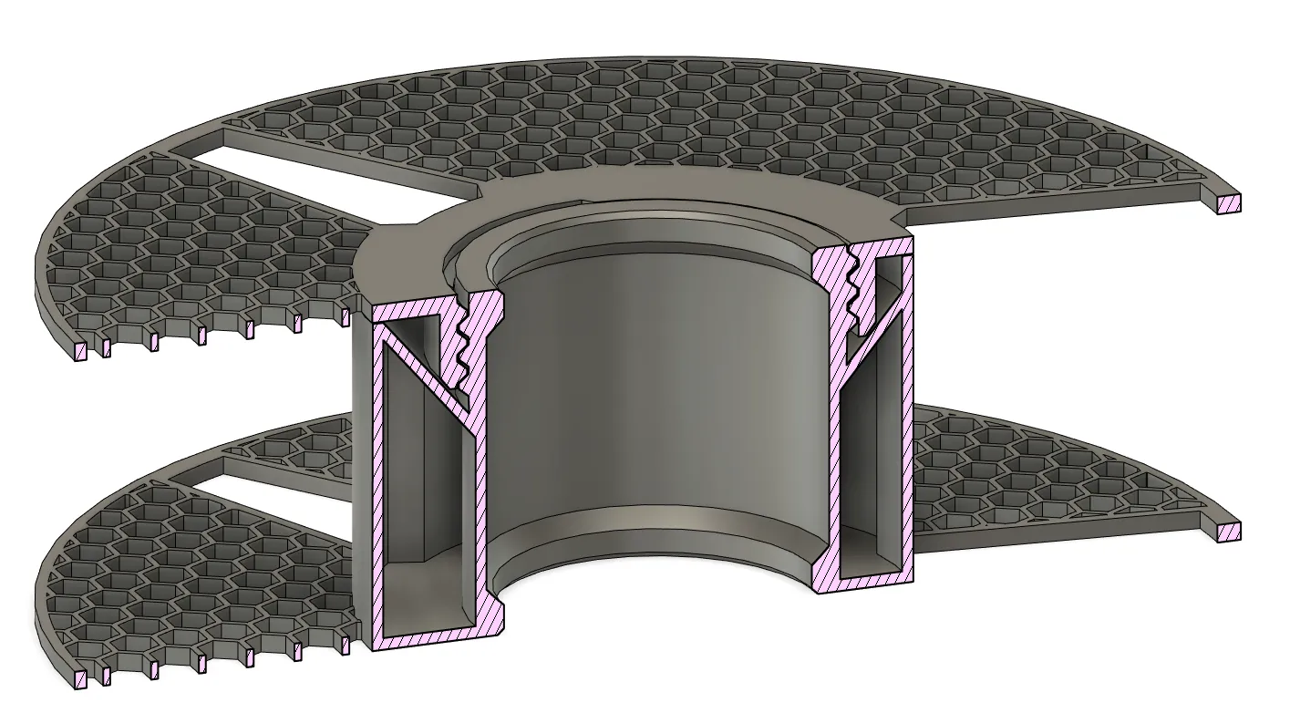 Bộ đệm chính được lắp ráp từ hai mảnh với một khớp nối được in.
