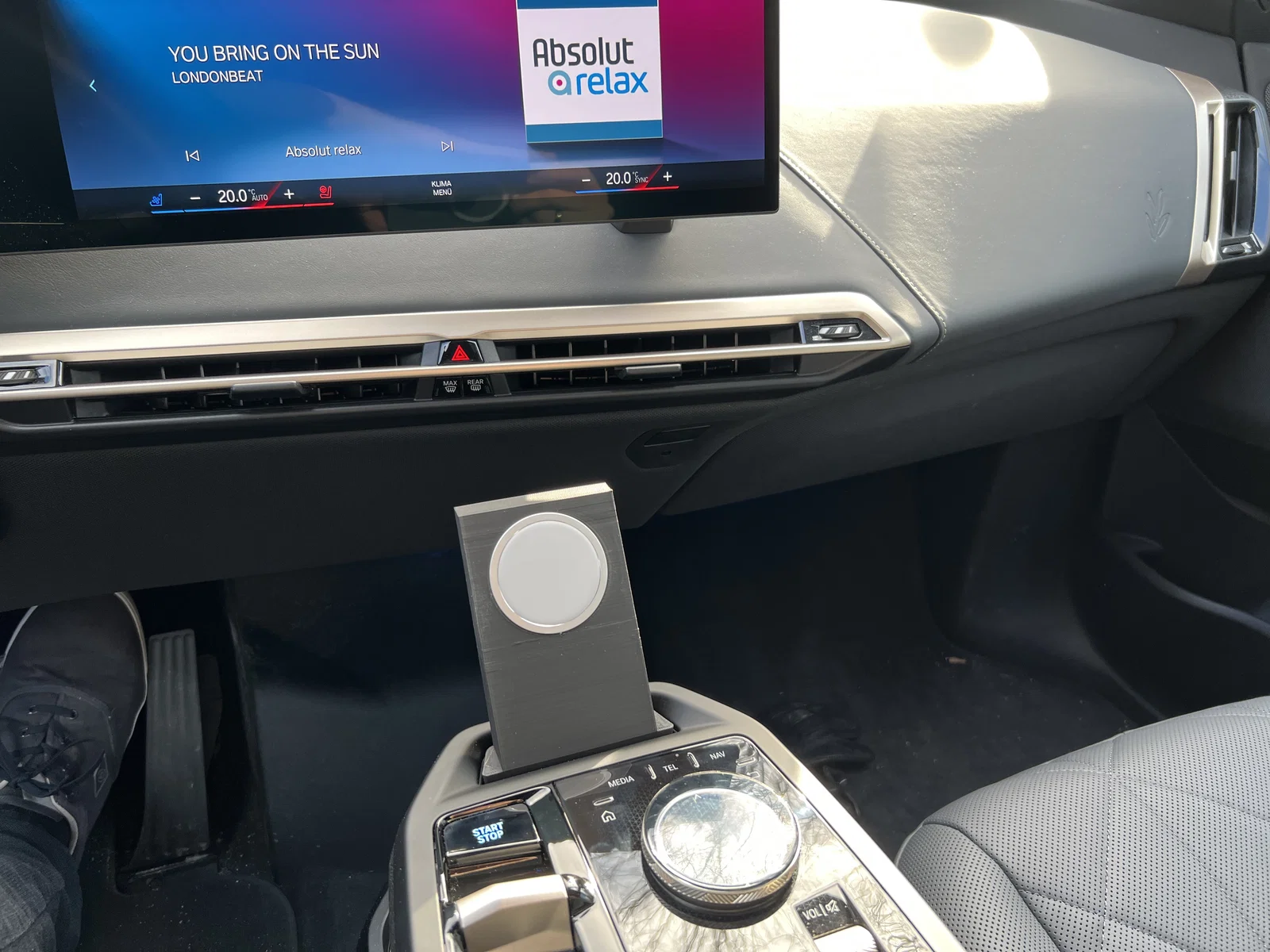 Đây là một ngàm MagSafe cho iPhone dùng trên BMW iX. Nó được gắn vào đúng ngàm/đế điện thoại zin ở cụm bệ trung tâm (center console).