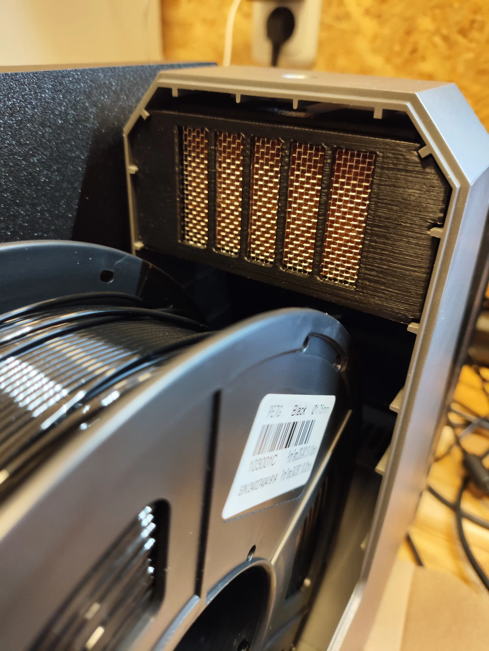 Mẫu drybox cho Creality Space Pi để chứa hạt silica gel, có rãnh trượt gắn lưới thép 20 mesh và lỗ luồn ống PTFE. Khuyến nghị in ABS, layer 0,2mm (nắp 0,1mm). Có V1/V2 kèm kích thước lưới.