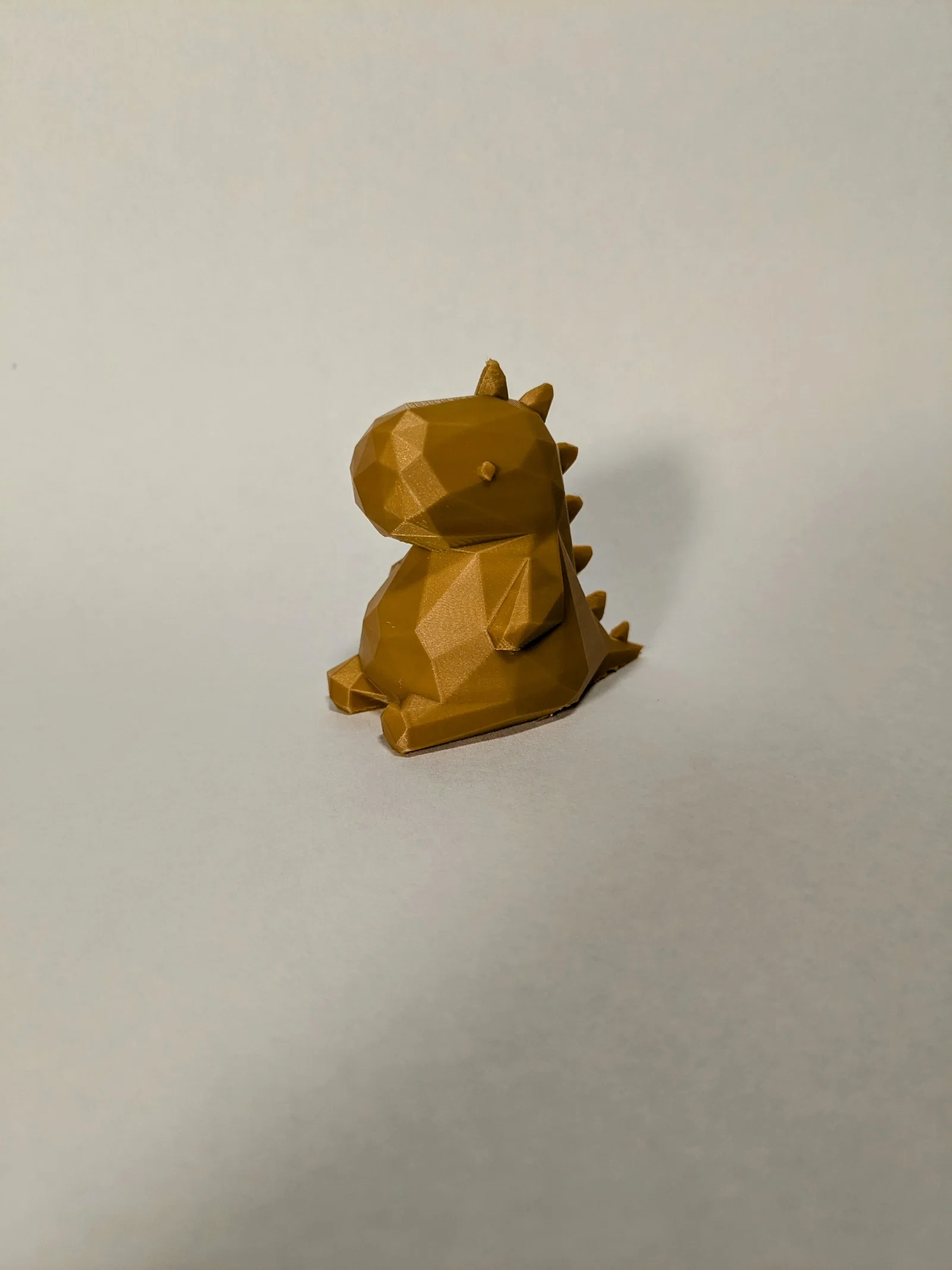 Mẫu Low Poly Desk Dino là khủng long dạng low polygon nhỏ gọn, thích hợp để trang trí bàn làm việc hoặc bàn ăn. Bản in thử bằng PETG màu vàng cho kết quả ổn, không gặp lỗi. Phù hợp làm figure mini vui mắt.