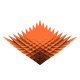 Để tạo hiệu ứng “giọt rơi xuống nước”, mình nghĩ tới một vài công thức hình học đối xứng. Mình bắt đầu với 100 khối chóp, tất cả giống nhau. Sau đó mình dịch chuyển 100 đỉnh theo 3 chiều (x, y, và z) theo công thức sau: