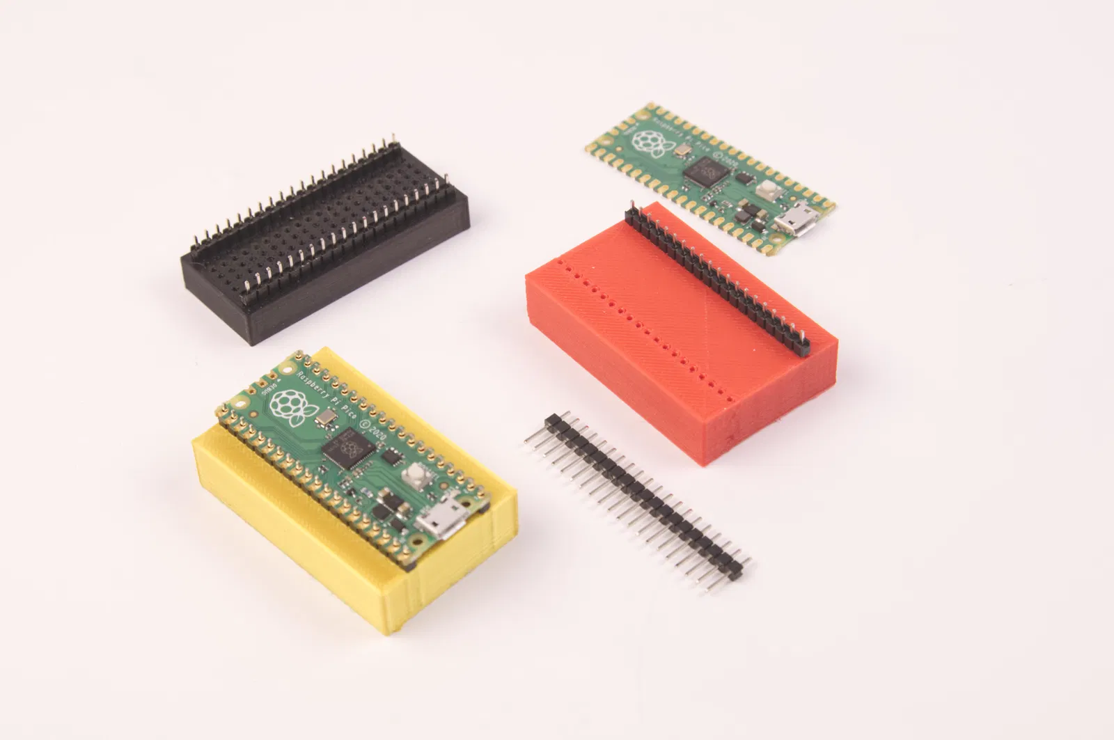 Dụng cụ hỗ trợ hàn này thay thế breadboard khi hàn chân header lên PCB. Có file STL cho Raspberry Pi Pico và file OpenSCAD tùy chỉnh được cho mọi loại bo mạch.