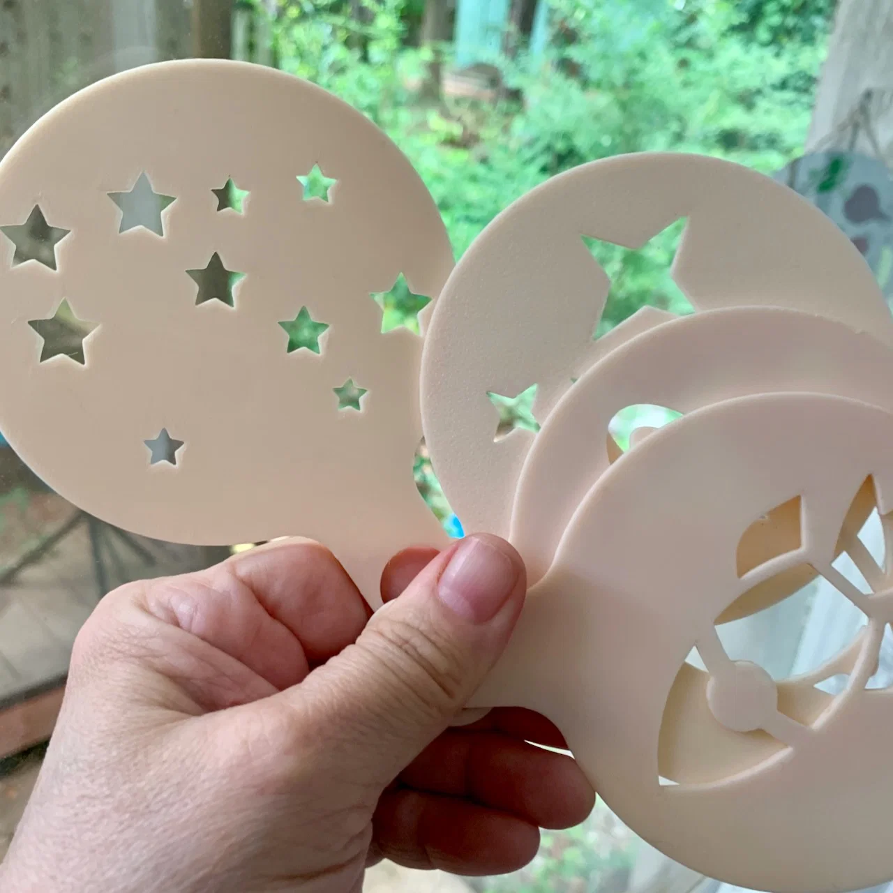 Tạo latte art (hoặc trang trí hot cocoa!) siêu dễ với 4 mẫu stencil chủ đề không gian này! Bạn có thể rắc bột để trang trí ly cappuccino buổi sáng với hình tên lửa, Sao Thổ (Saturn), một chòm sao, hoặc các ngôi sao cỡ lớn kiểu mid-century. Nhấp một ngụm rồi thả hồn mơ về những vì sao!