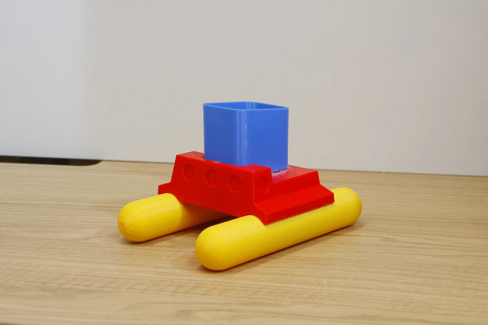 Aquamobile là thuyền đồ chơi tắm kiểu vintage từ thập niên 70 ở Pháp, tự chạy nhờ nước. Đổ nước vào ống khói, nước thoát qua ống nhỏ tạo lực đẩy. Có file in nguyên chiếc hoặc tách part để in nhiều màu, cần dán keo nhẹ.