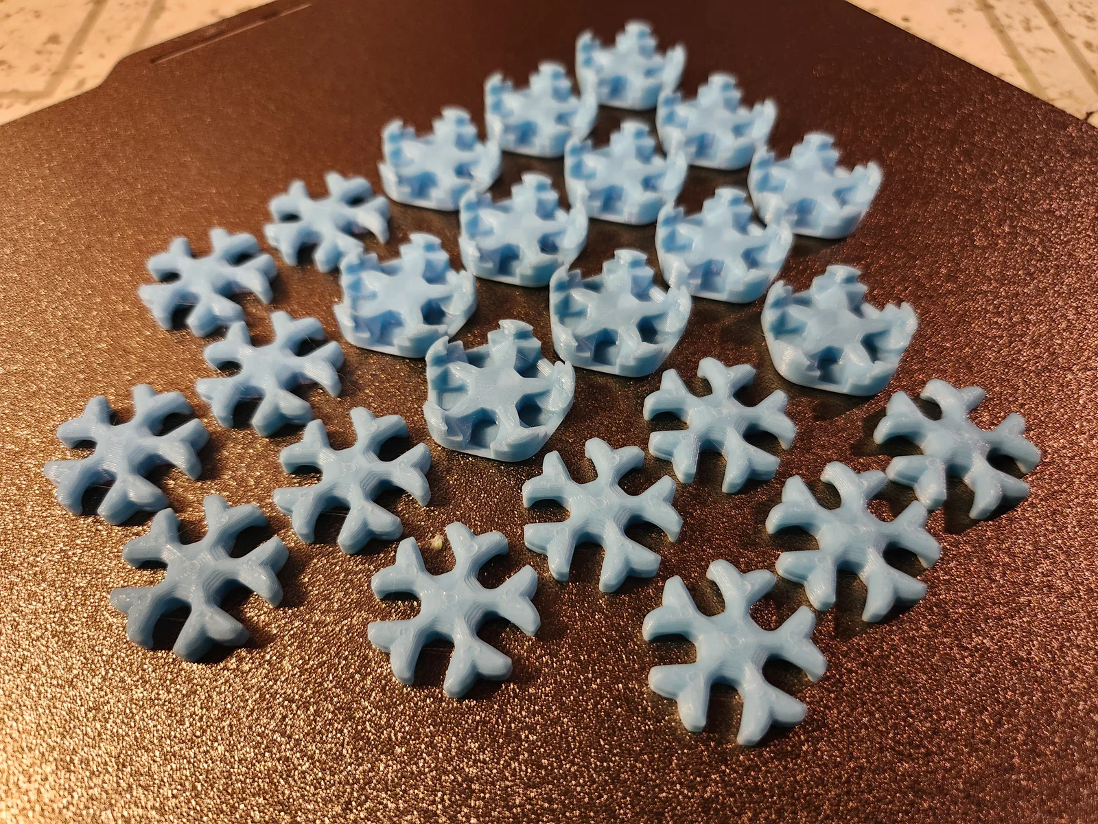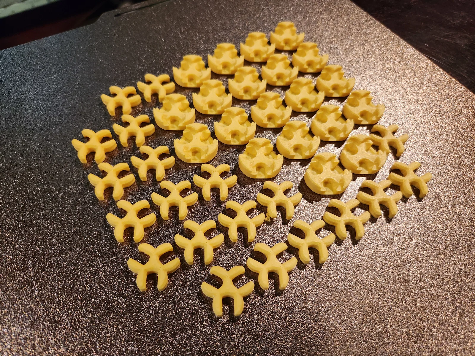 Tất cả chi tiết đều được thiết kế để in không cần supports hay brim. Bạn sẽ cần in 60 arms, 20 three-way connectors, và 12 five-way connectors để lắp ráp. Bản trong hình dùng arms dài 6 cm, khi nở ra sẽ thành hình cỡ khoảng 25 cm. Ngoài ra còn có thêm các độ dài arms khác nếu bạn muốn làm phiên bản lớn hơn.