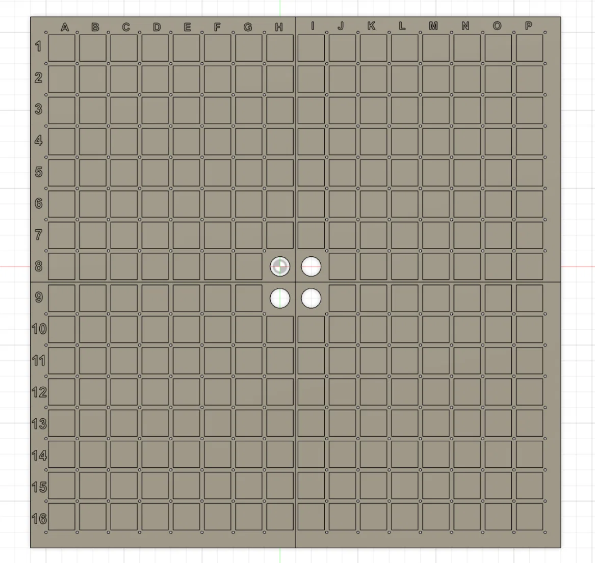 Bàn cờ modular kích thước 16x16 để chơi Ricochet Robots (game đã ngừng phát hành). Có robot meeple ở các mẫu khác; cần thu nhỏ tối đa 18mm để vừa ô. Tường chưa có, dự tính bắt bằng vít M2 cách 20mm.